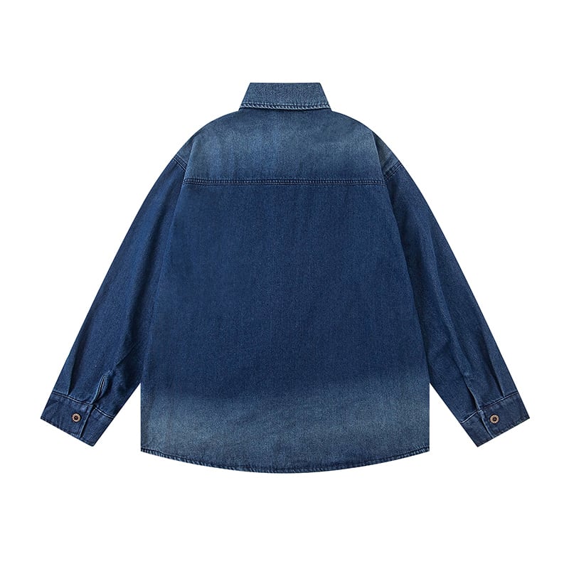 【UATONLINEシリーズ】★シャツ★ 花柄 刺繍 2color トップス 長袖シャツ 男女兼用 メンズ デニム カジュアル