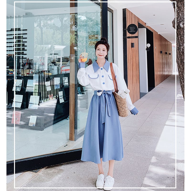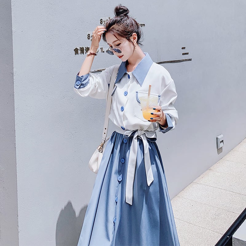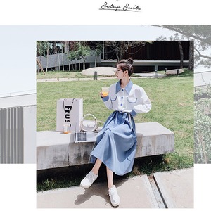 【Sun and moonシリーズ】★ワンピース★ 切り替え シャツワンピース カジュアル 配色 可愛い フェイクレイヤード