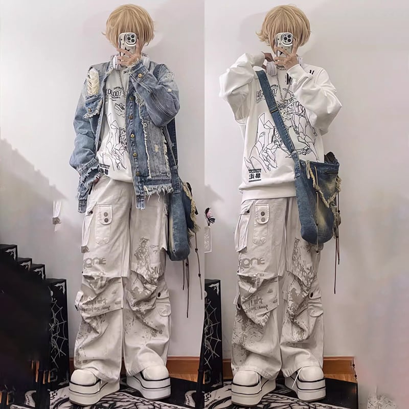 ✿秋新作!【AXIシリーズ】★デニムパンツ★ カジュアルパンツ ズボン 男女兼用 メンズ レディース 大きいサイズ 個性的