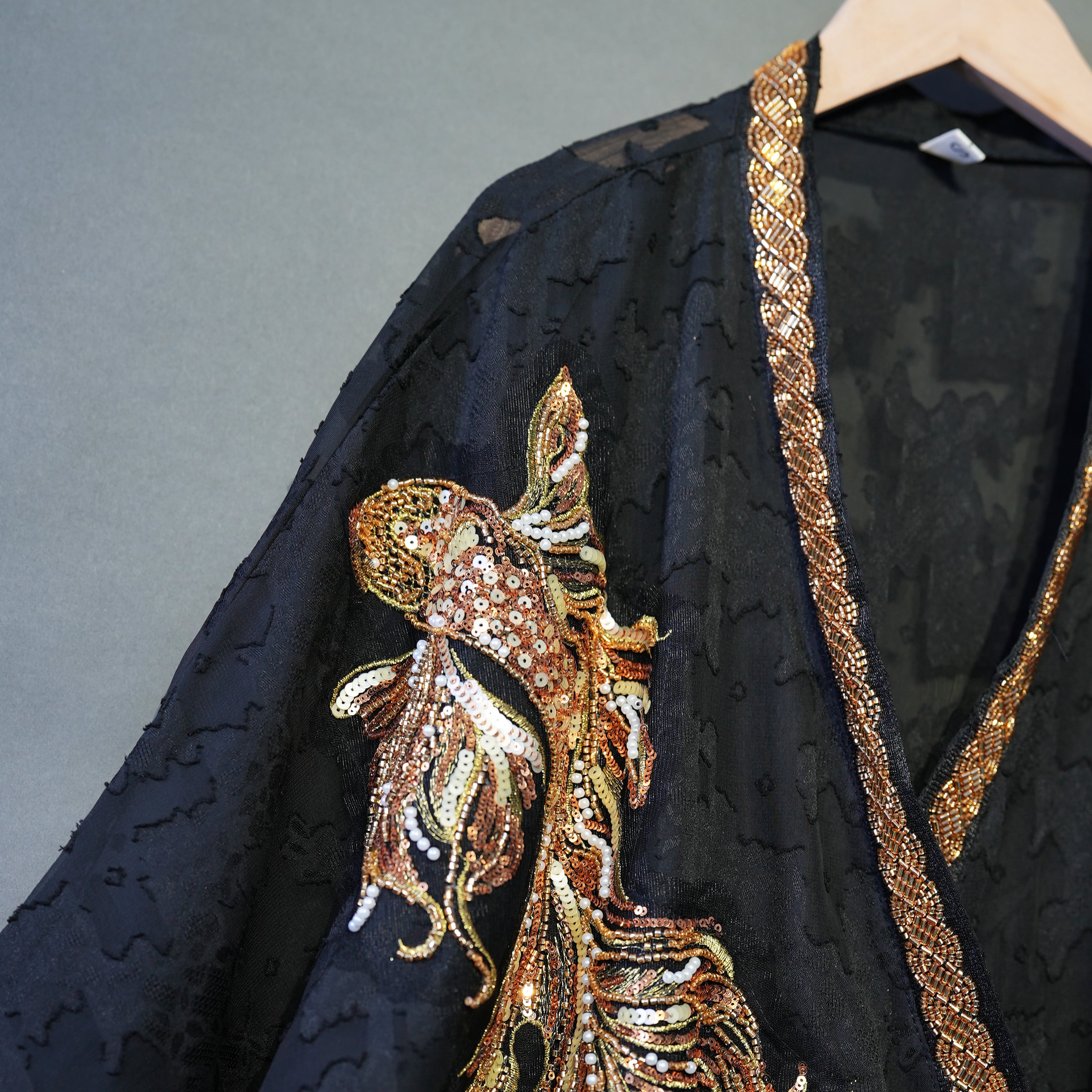 【SHANGPINシリーズ】★チャイナ風アウター★ トップス 法被 Vネック ブラック 黒い 気質アップ