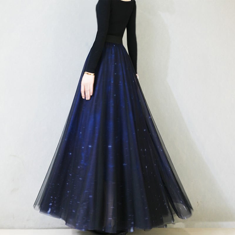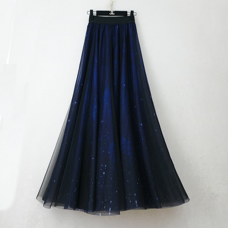 【煥小沫シリーズ】★スカート★ 3種類着丈選択可能 ボトムス レディース 大きいサイズ 星空 ブルー 青い