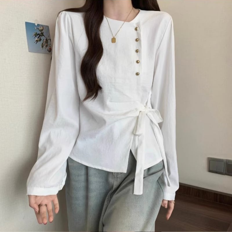 【CZBシリーズ】★シャツ★ 3color トップス 長袖シャツ レディース カジュアル 不規則 ホワイト ネイビー カーキ