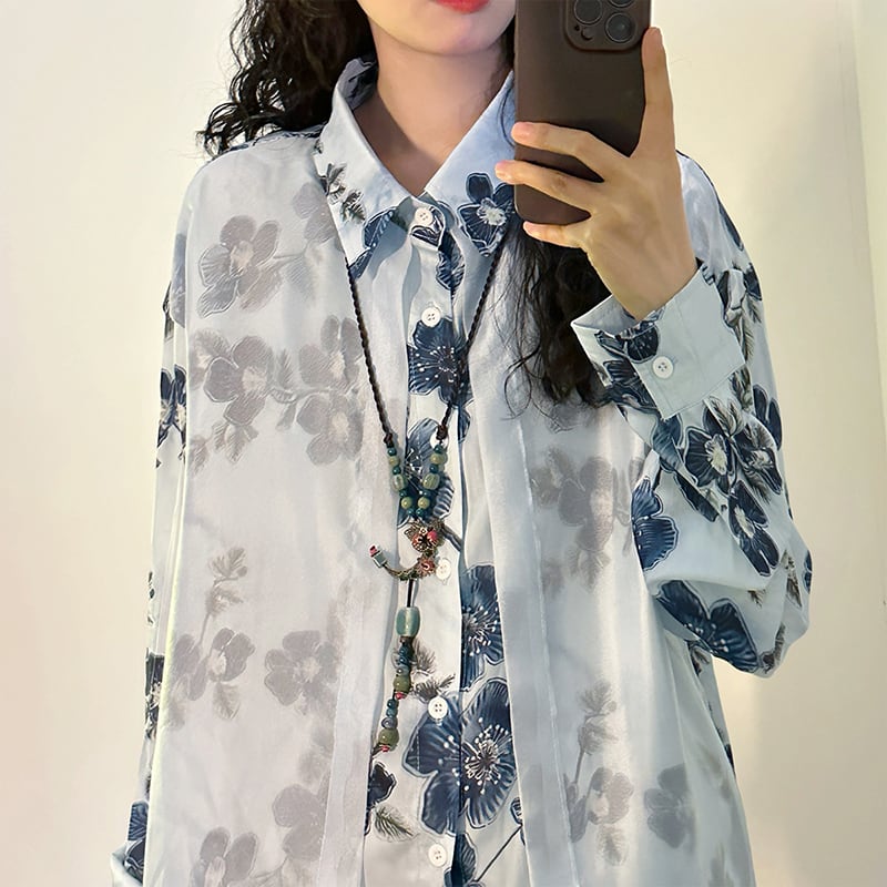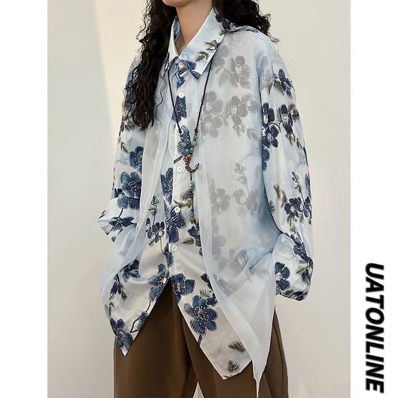 ✿秋新作!【UATONLINEシリーズ】★チャイナ風トップス★ シャツ 長袖シャツ 男女兼用 メンズ フェイクレイヤード 花柄