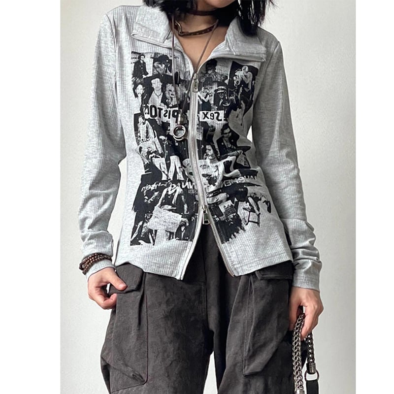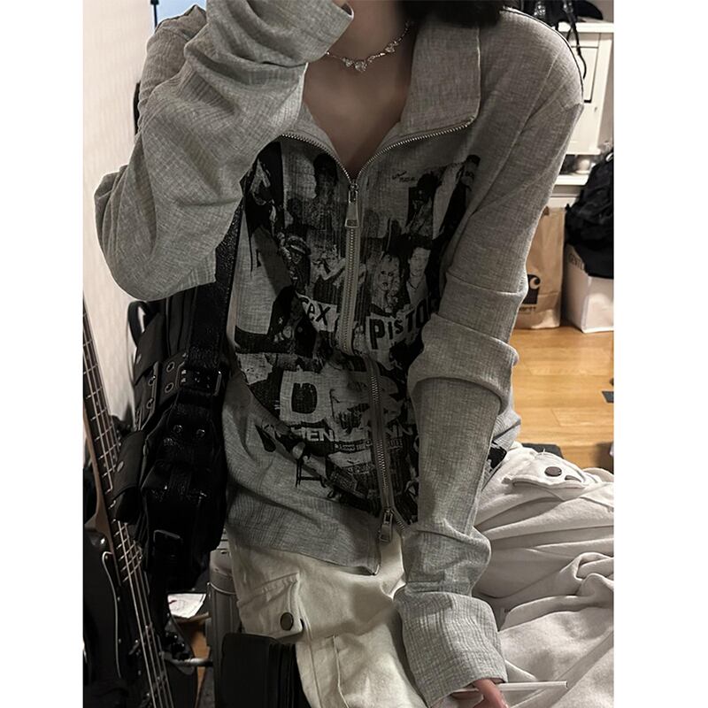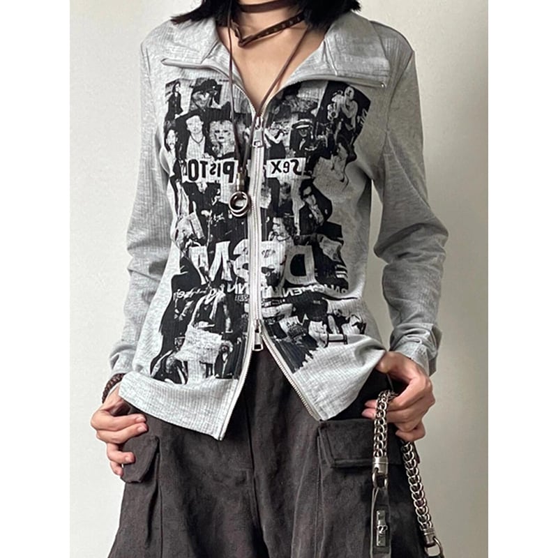 【YUEKAPAIシリーズ】★トップス★ アウター レディース おしゃれ 可愛い スリム 合わせやすい グレー 灰色 プリント