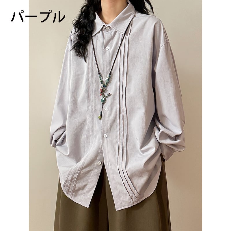 ✿秋新作!【UATONLINEシリーズ】★シャツ★ 3color 長袖シャツ トップス 男女兼用 メンズ シンプル 青 紫 黄