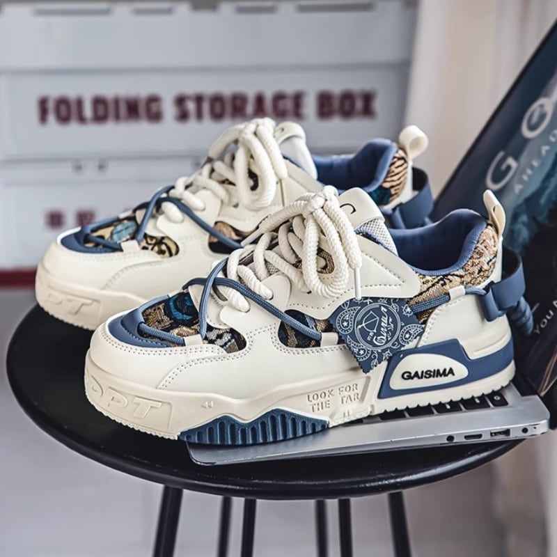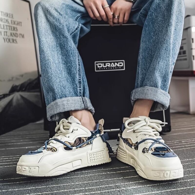 【DTDシリーズ】★スニーカー★ 3color メンズ お靴 スポーツ ペイズリー柄 油絵風 サイズ39-44 緑 青 カーキ カジュアル