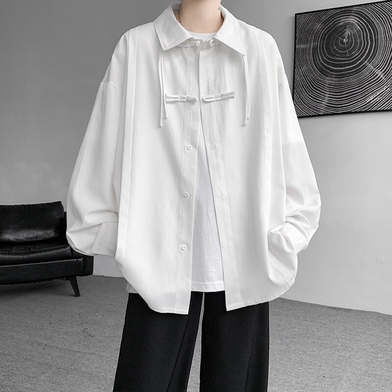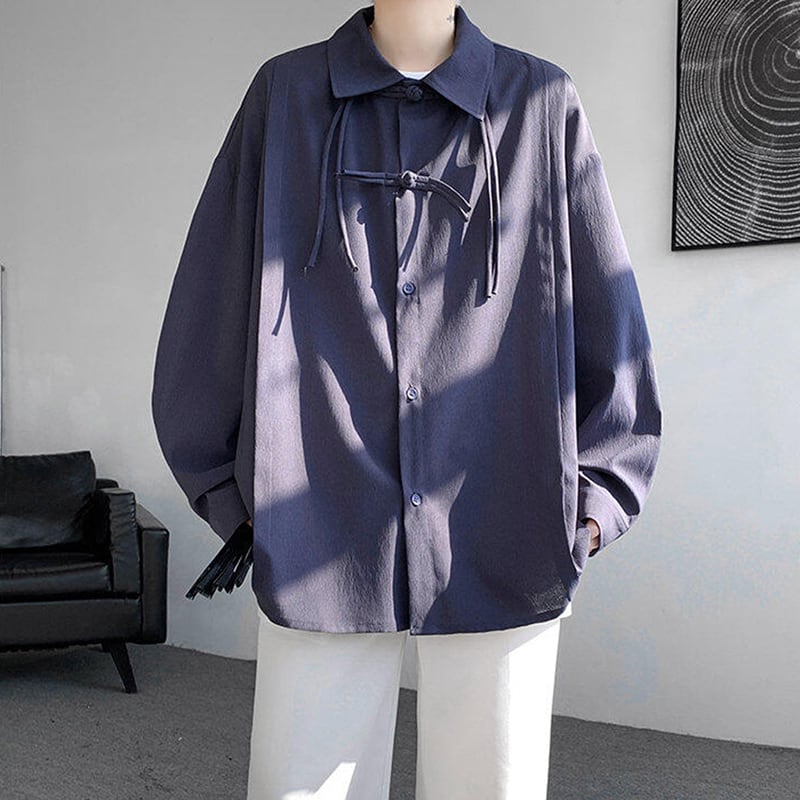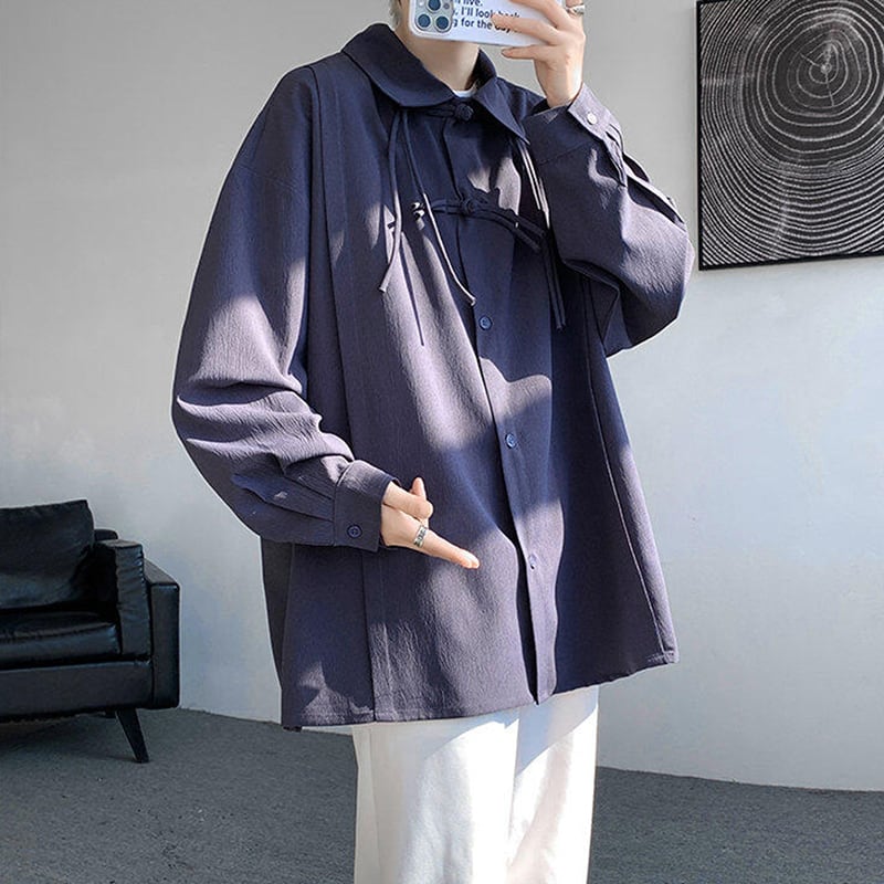 ✿秋新作!【CEXUシリーズ】★チャイナ風トップス★ 3color シャツ チャイナボタン 男女兼用 メンズ 大きいサイズ 黒 白 青 長袖シャツ
