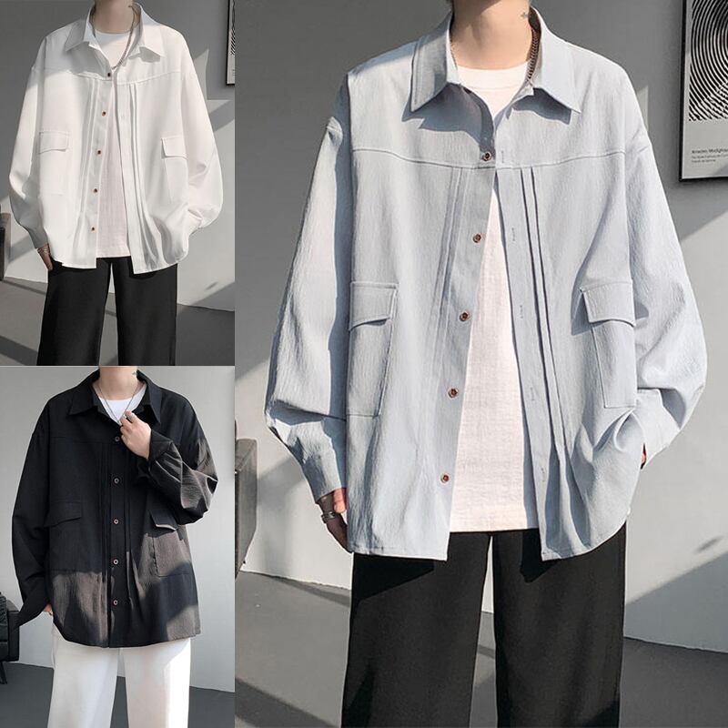 ✿秋新作!【CEXUシリーズ】★シャツ★ 3color トップス 男女兼用 メンズ 大きいサイズ 黒 白 青 長袖シャツ