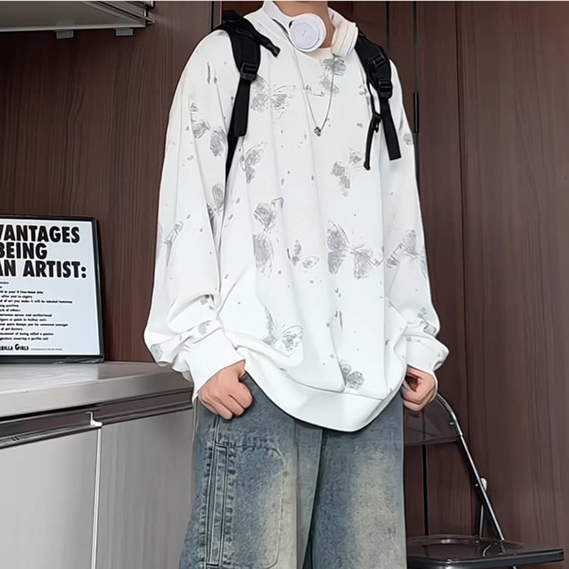 ✿秋新作!【CEXUシリーズ】★トップス★ 2color スウェット 男女兼用 メンズ 大きいサイズ 蝶々 プリント