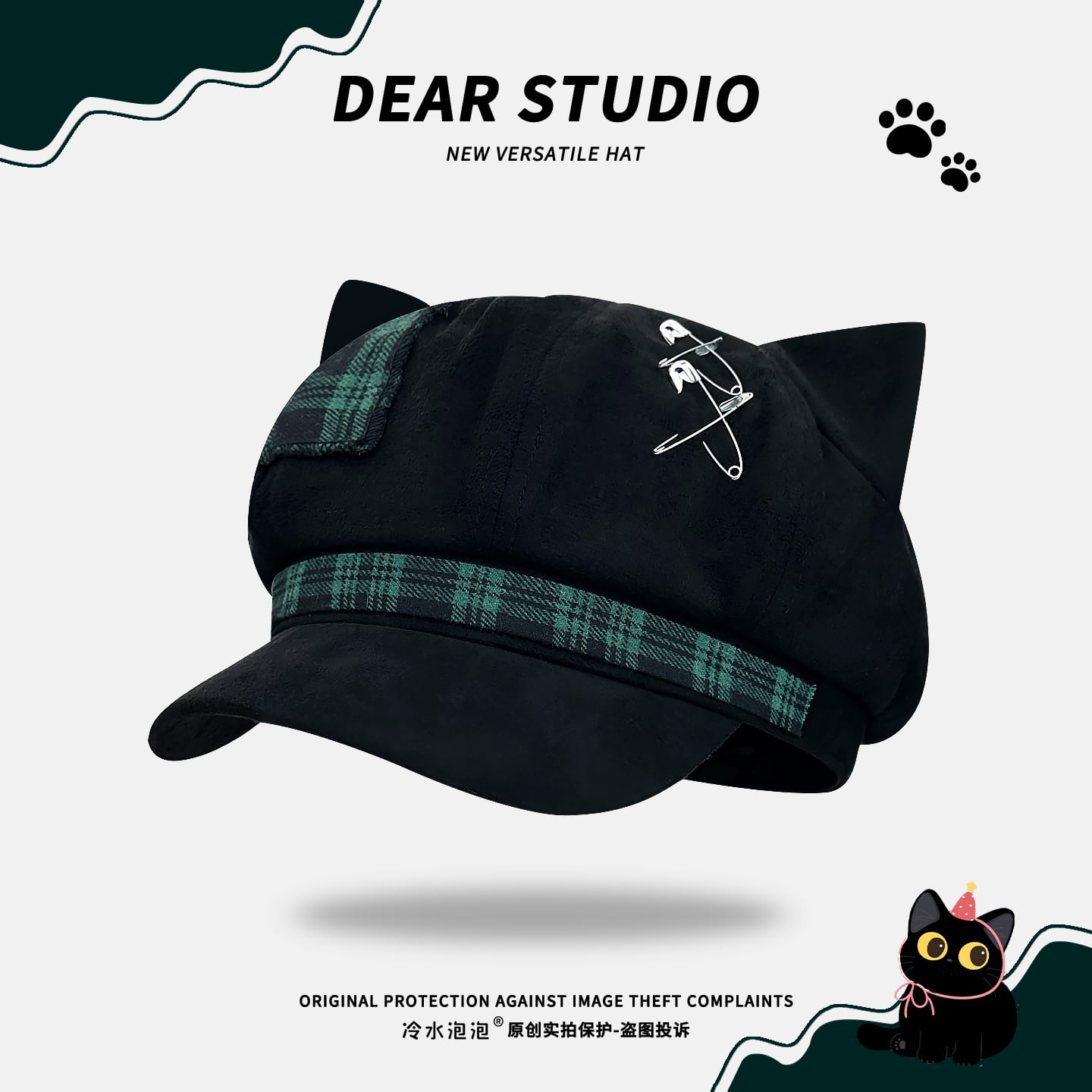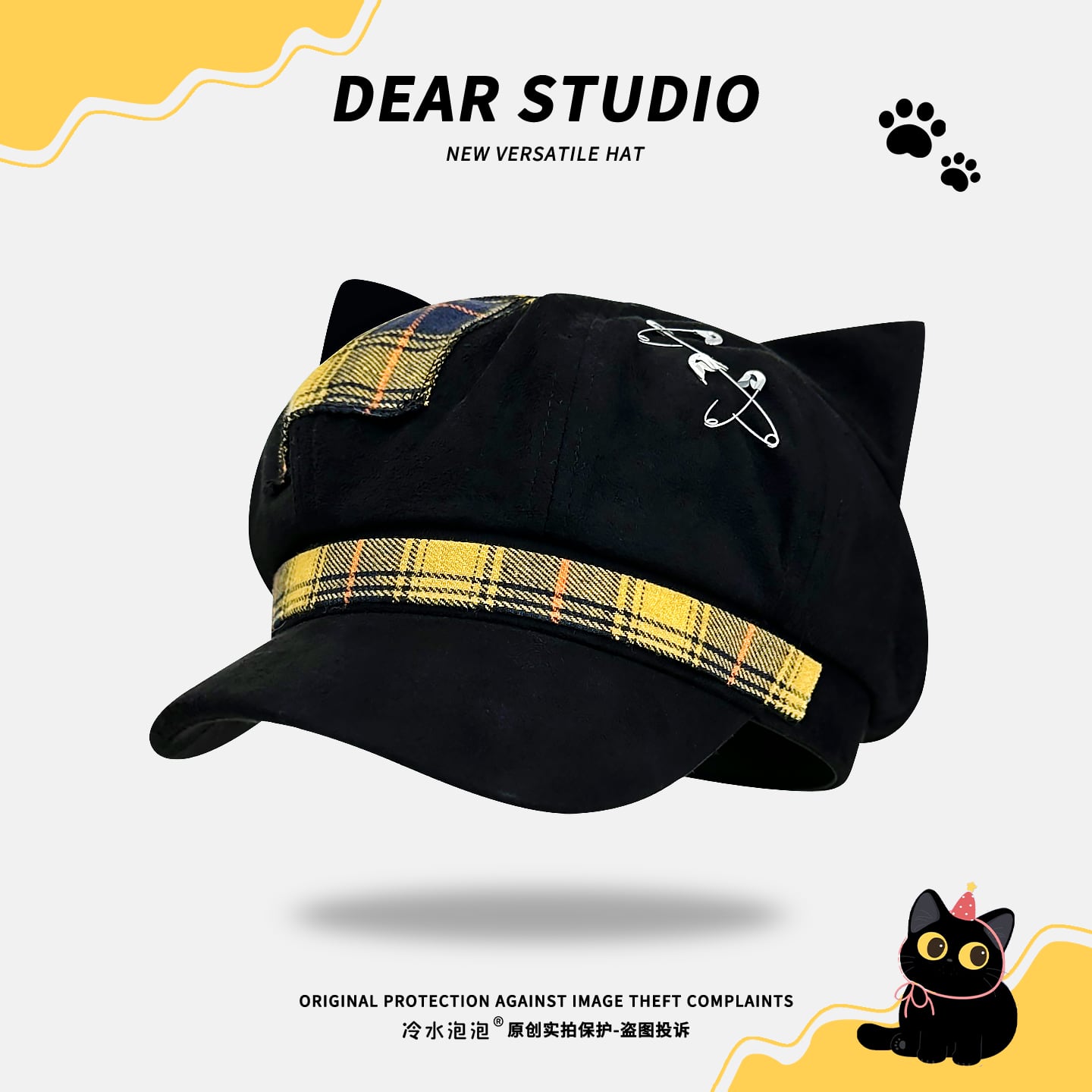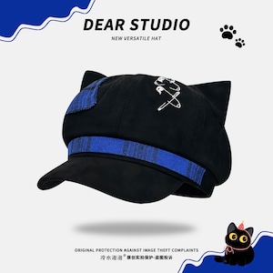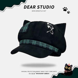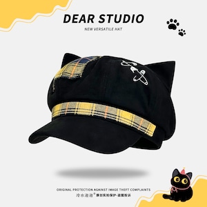 ♥人気商品、新追加3色!【Dear studioシリーズ】★帽子★ 5color レトロ レディース チェック柄 ねこ 猫 ネコ 可愛い ブラック