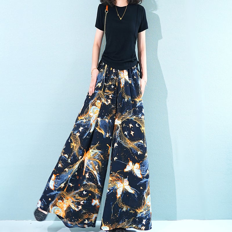 【煥小沫シリーズ】★ズボン★ 2種類着丈選択可能 ボトムス レディース 大きいサイズ 蝶々 プリント