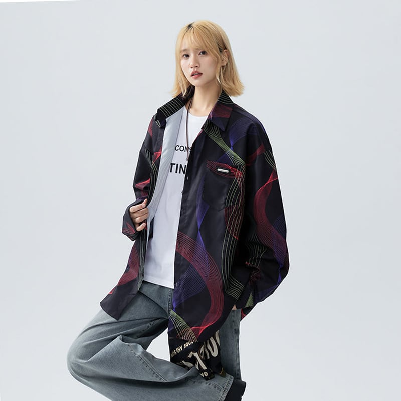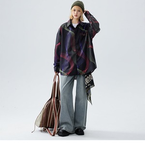 ✿秋新作!【藤伊曼シリーズ】★シャツ★ 3color トップス 長袖シャツ 男女兼用 メンズ レディース 大きいサイズ プリント