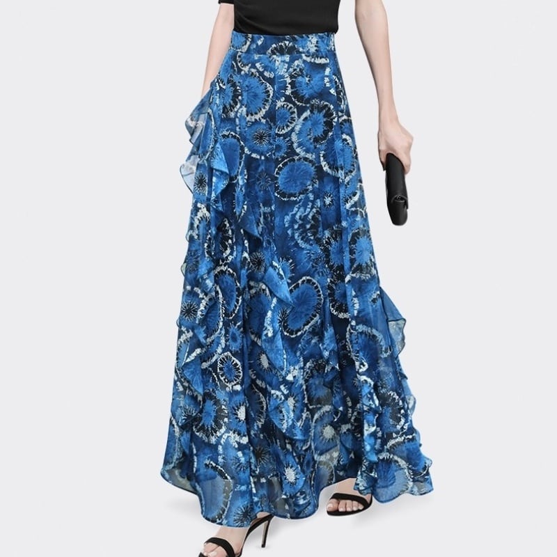 【XIAOJIシリーズ】★スカート★ レディース 花柄 おしゃれ 大きいサイズ デート ブルー 青い
