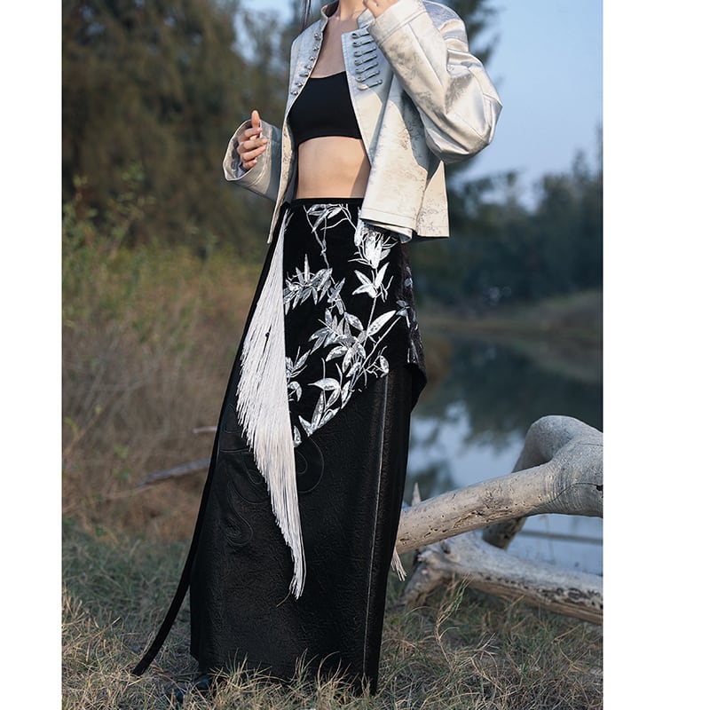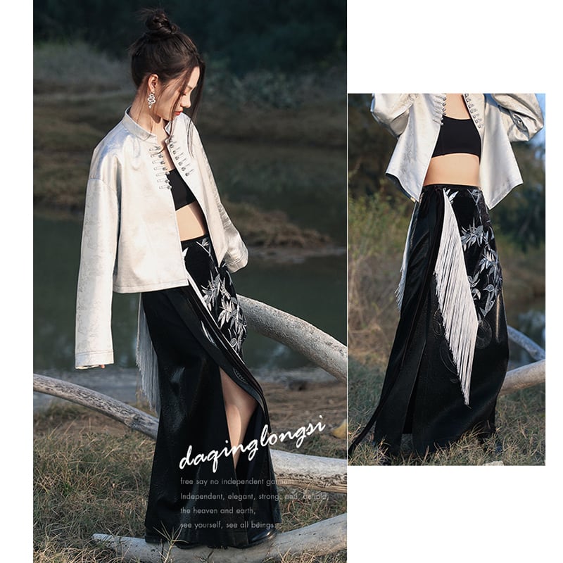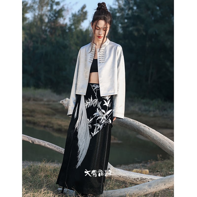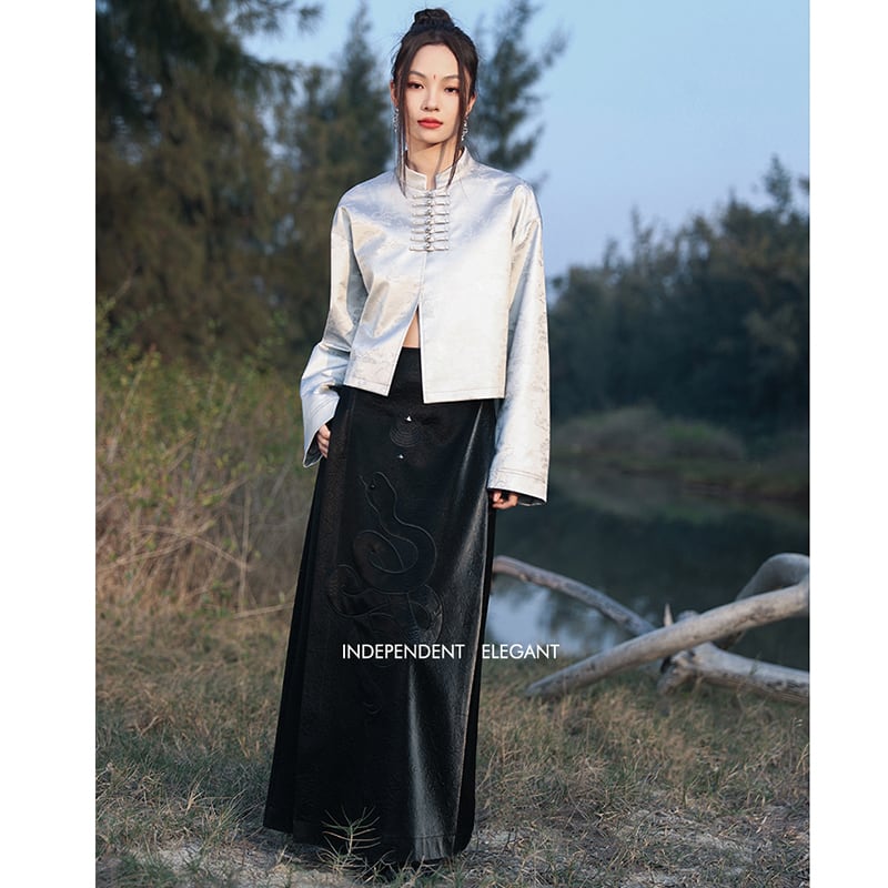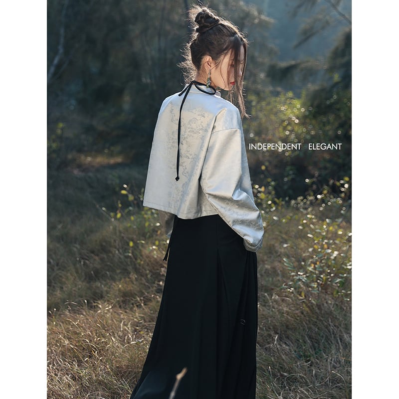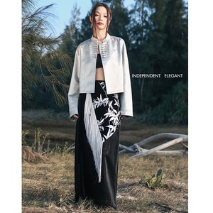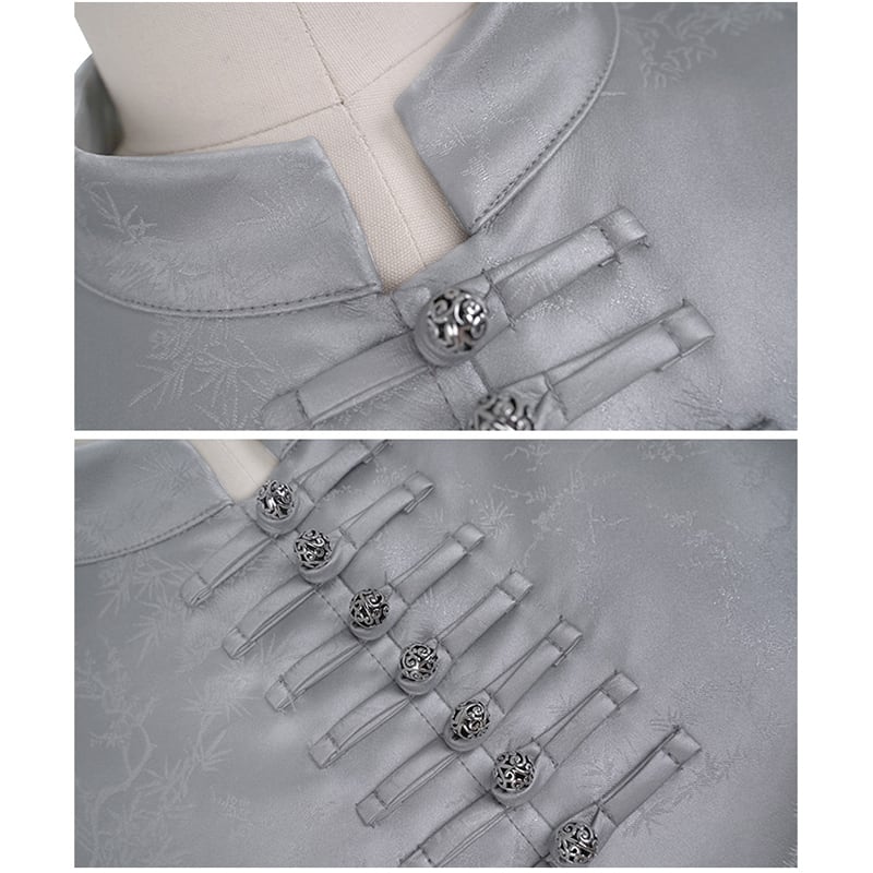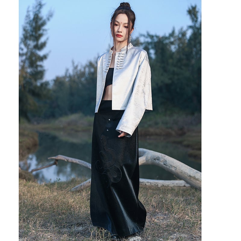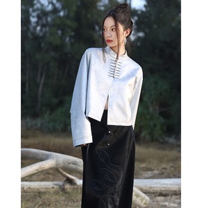 【大青龍肆シリーズ】★チャイナ風アウター★ チャイナボタン オリジナル 改良唐装 シルバー ショート丈