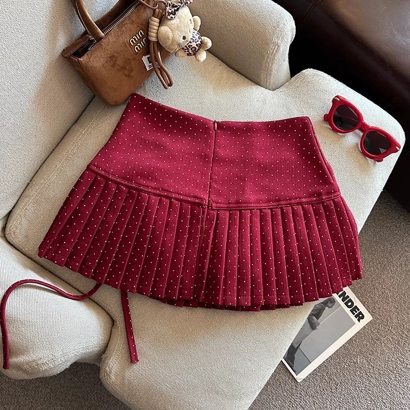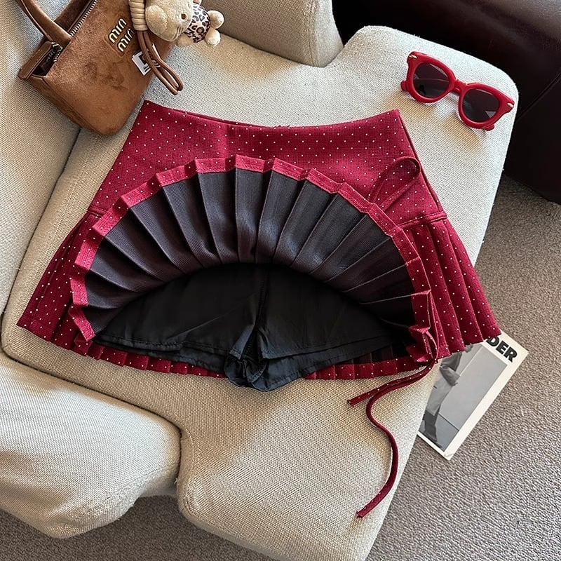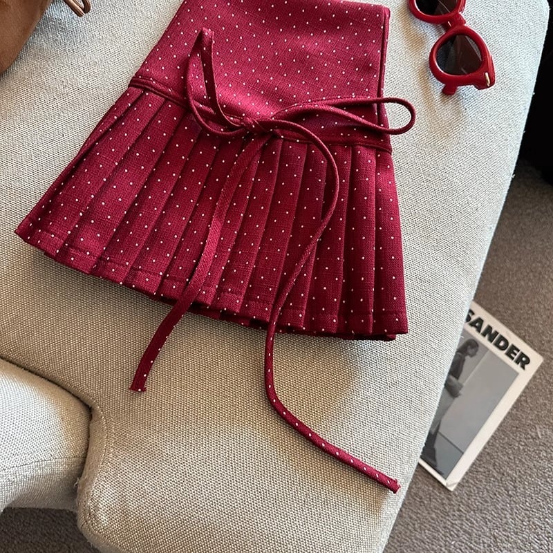 【KEXINシリーズ】★スカート★ 3カラー ミニスカート ドット柄 リボン ボトムス レディース 青 黒 赤
