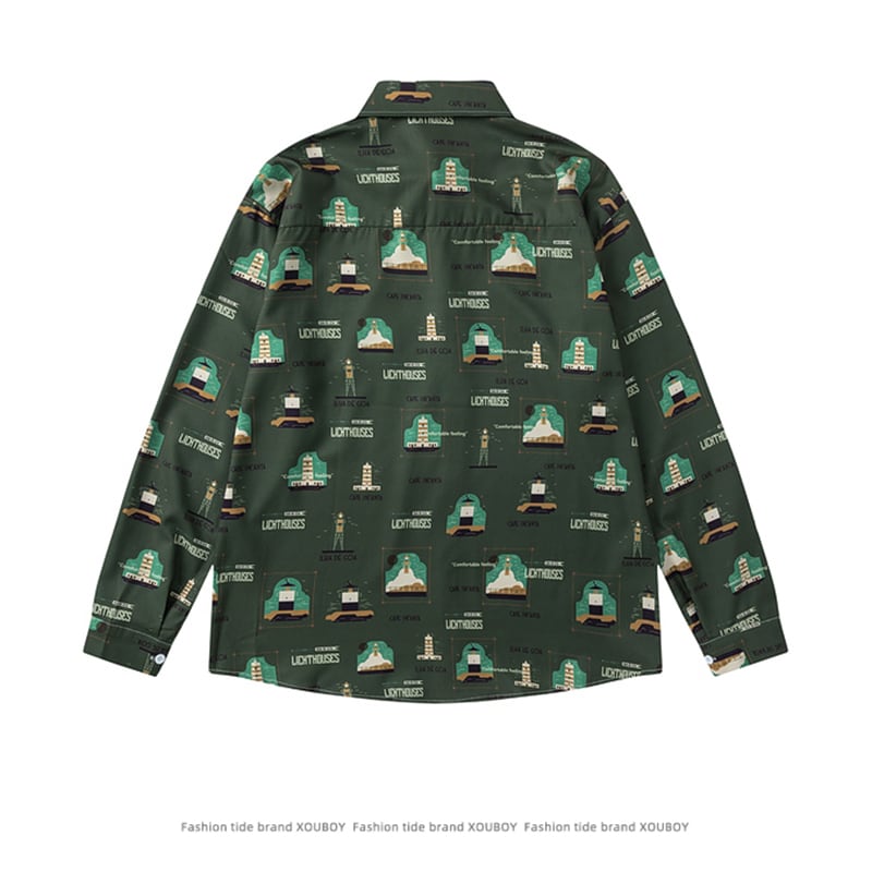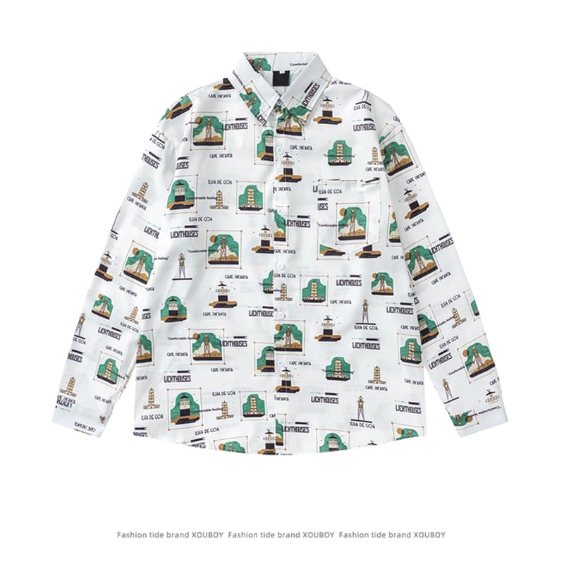 【51XIHAシリーズ】★シャツ★ トップス 2color 半袖 男女兼用 メンズ プリント 白 緑 おしゃれ 長袖シャツ