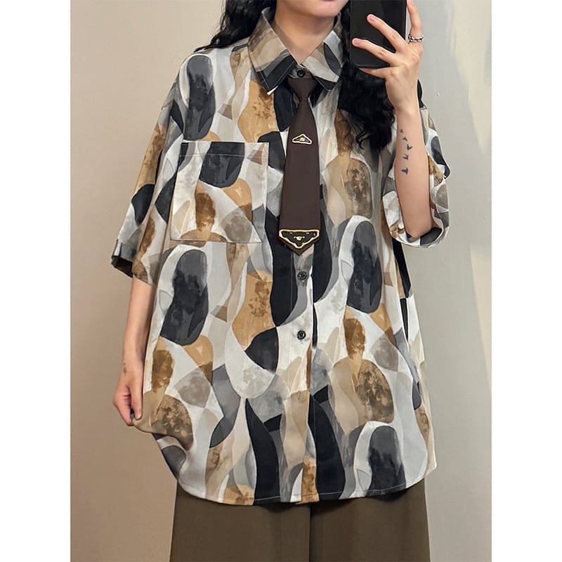 【UATONLINEシリーズ】★シャツ★ 2color ネクタイ付きシャツ 半袖シャツ トップス 男女兼用 メンズ 配色 おしゃれ