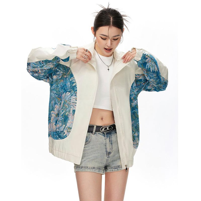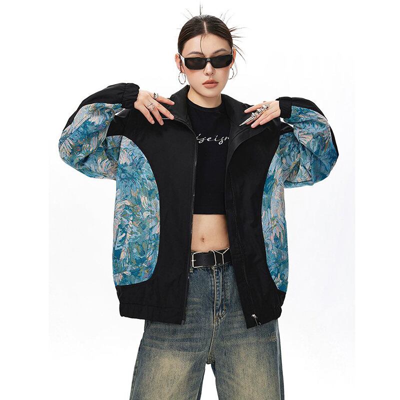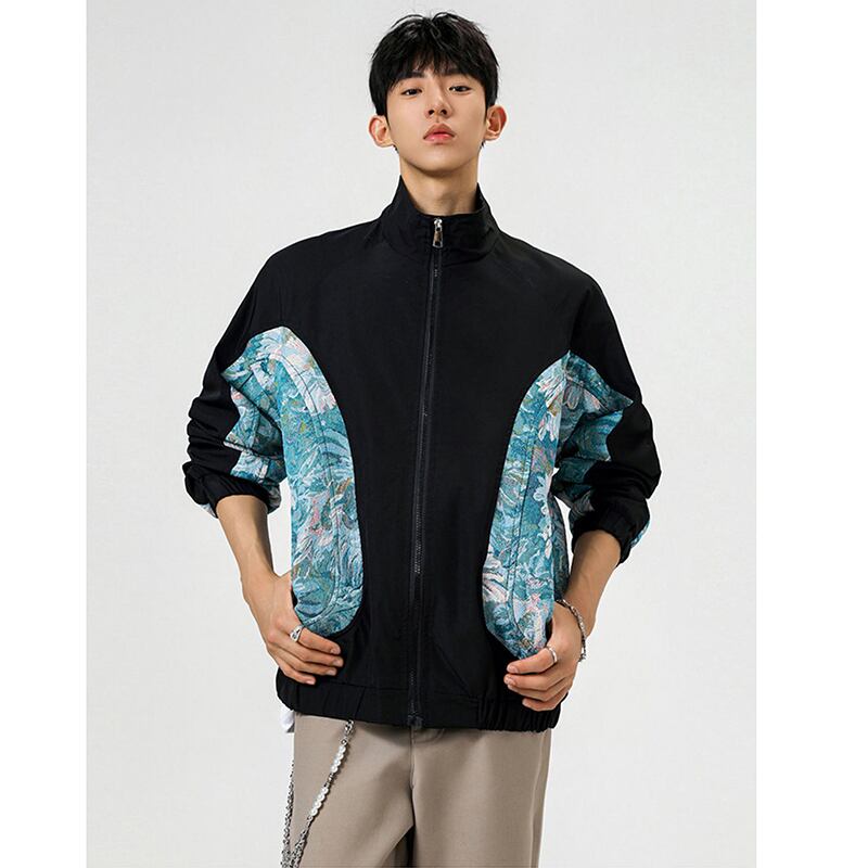 ✿秋新作!【OULANGSENシリーズ】★アウター★ 2color ジャケット 男女兼用 メンズ 油絵風 切り替え スタンドネック
