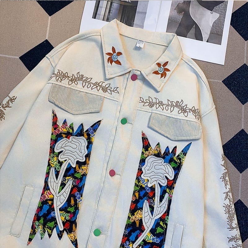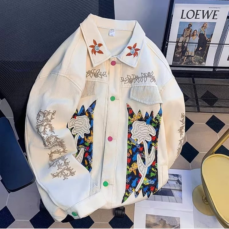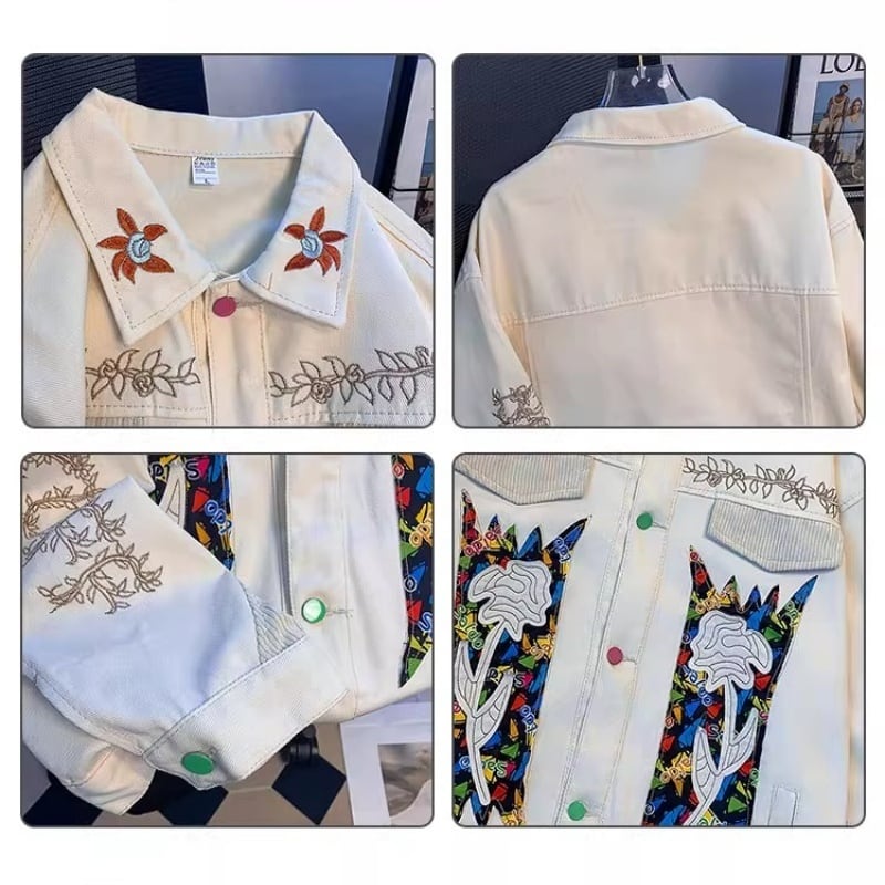 【夜色文藝シリーズ】★アウター★ ジャケット 刺繍入り 男女兼用 メンズ 油絵風 カジュアル デザイン性有り