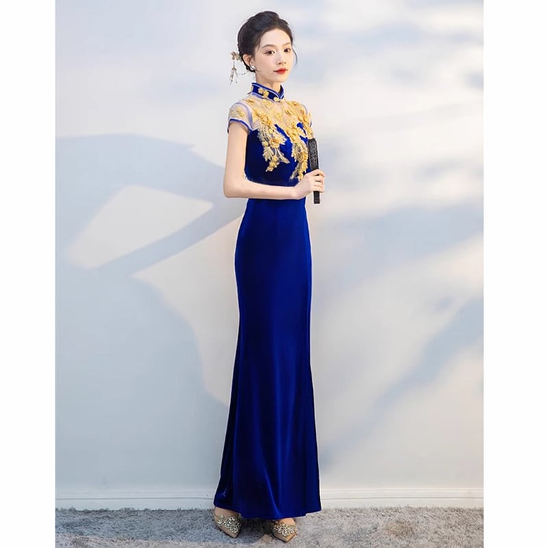 【YISHABUSHEシリーズ】★チャイナドレス★ 2color チャイナ風ワンピース パーティー 結婚式 大きいサイズ スリット ベルベット