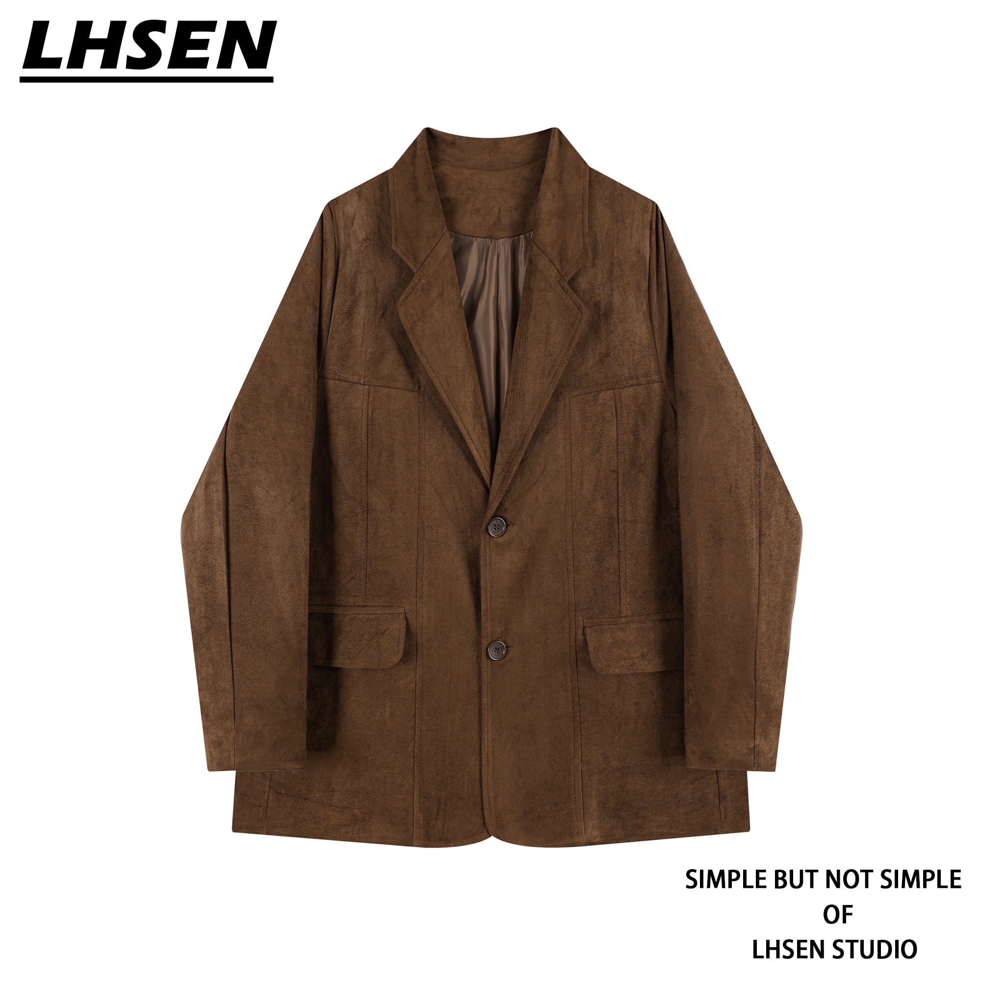 【LHSENシリーズ】★アウター★ ブレザー レトロ 男女兼用 メンズ レディース スエード ブラウン 個性的
