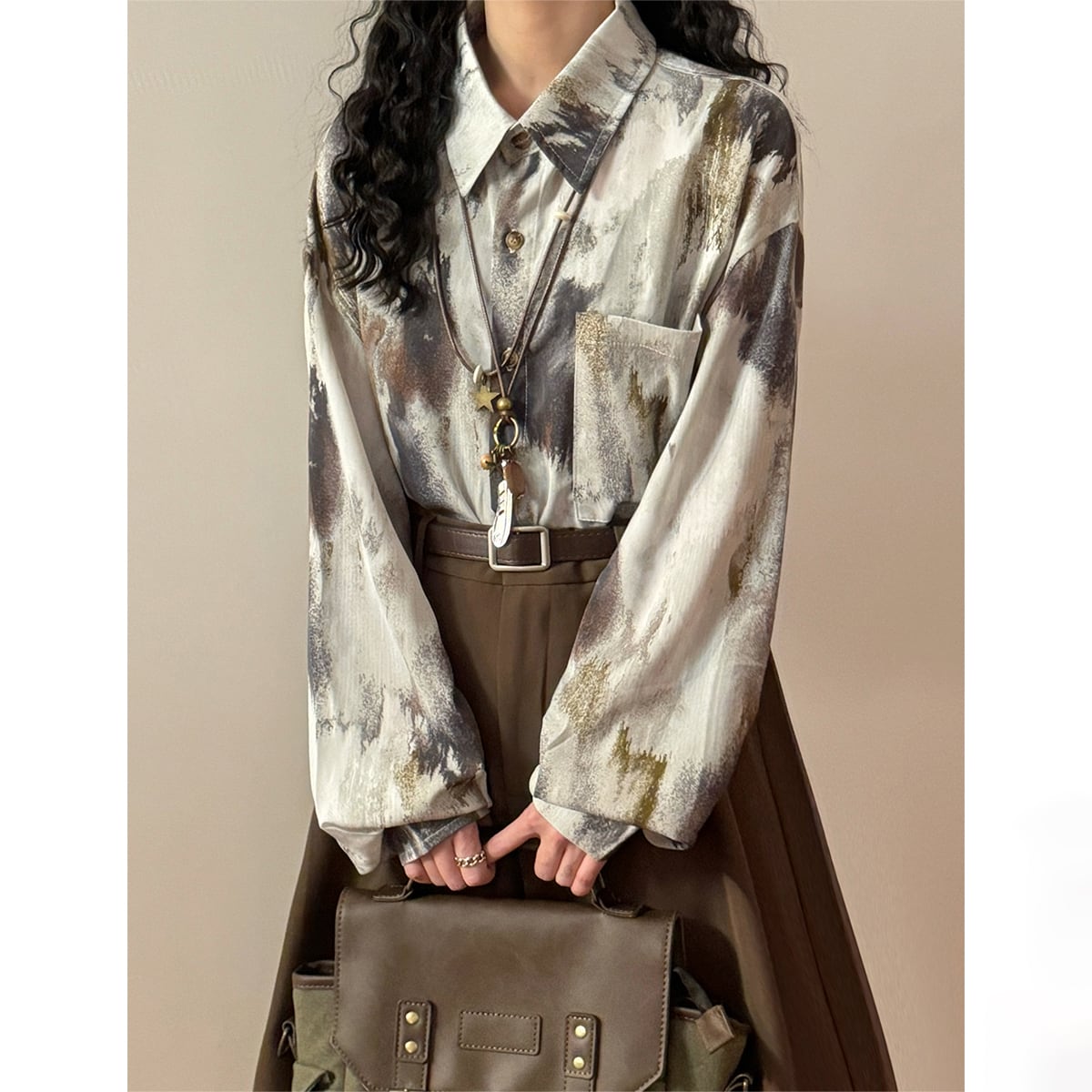 ✿秋新作!【UATONLINEシリーズ】★シャツ★ ネックレス付きシャツ 長袖シャツ 油絵風 男女兼用 メンズ