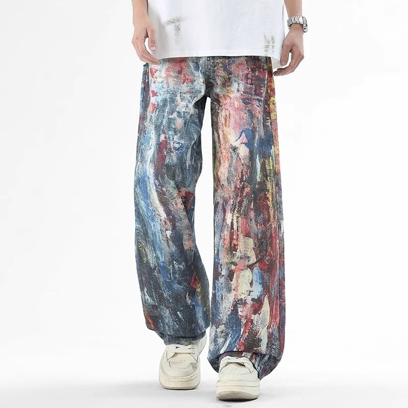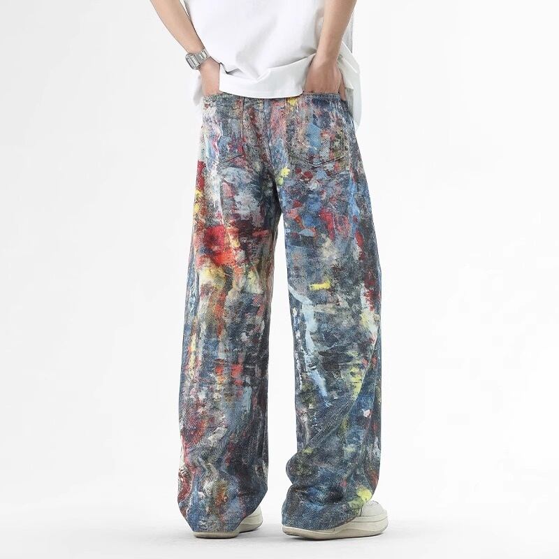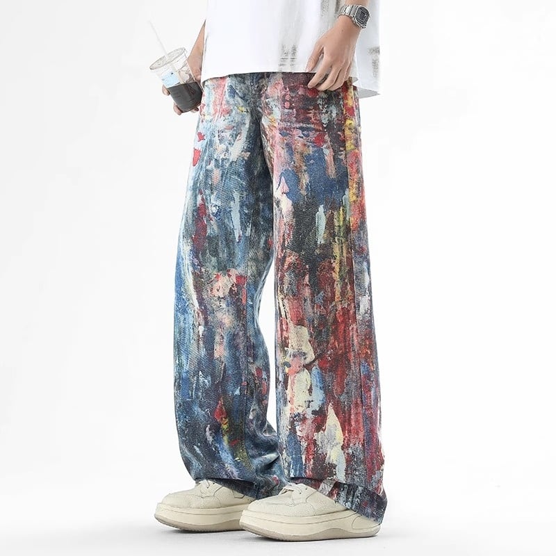 【QIMIAOシリーズ】★デニムパンツ★ 落書き ボトムス ズボン ブルー 青い おしゃれ 合わせやすい