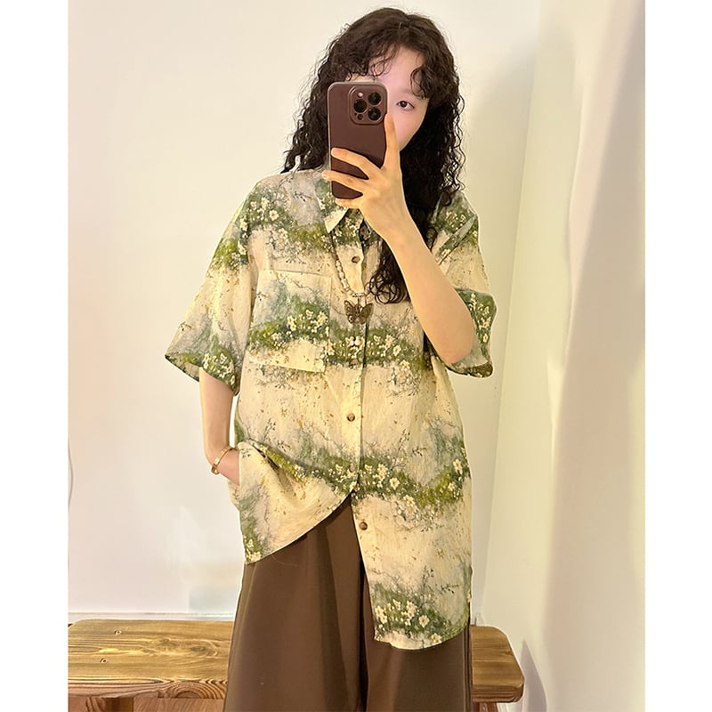 【UATONLINEシリーズ】★シャツ★ ネックレス付きシャツ 半袖シャツ 男女兼用 メンズ 花柄 緑