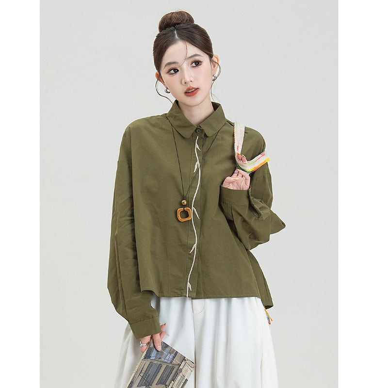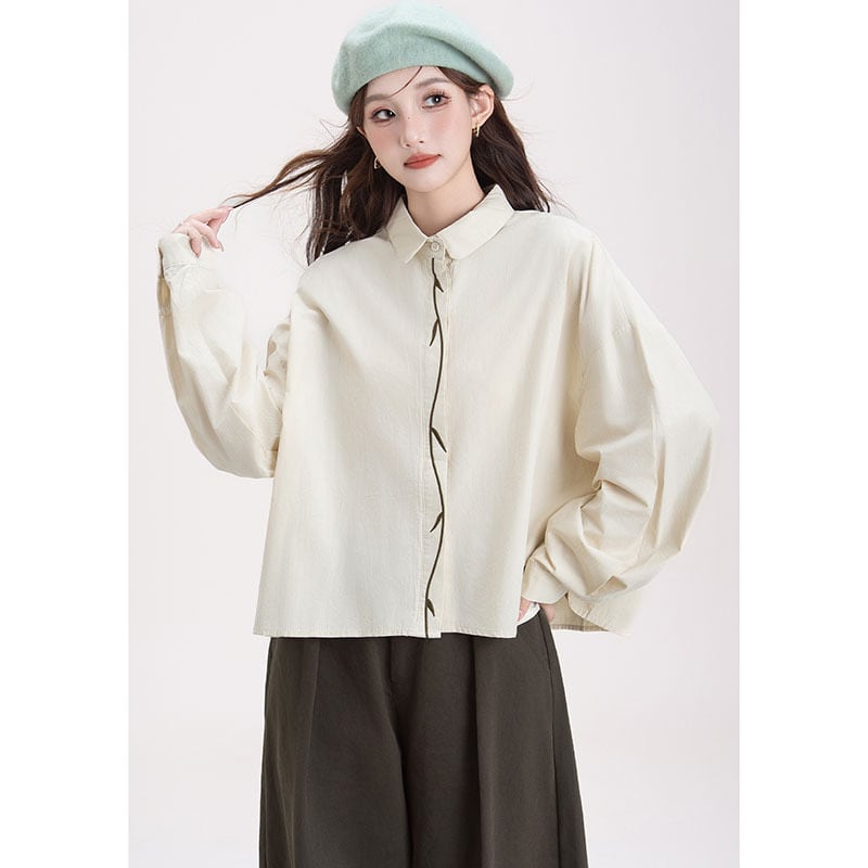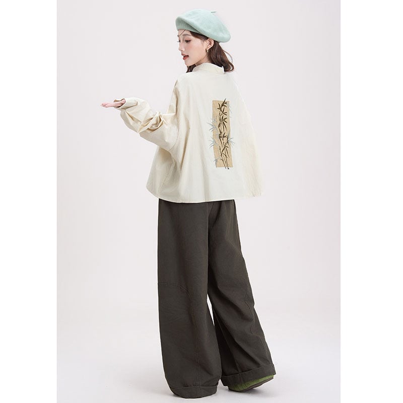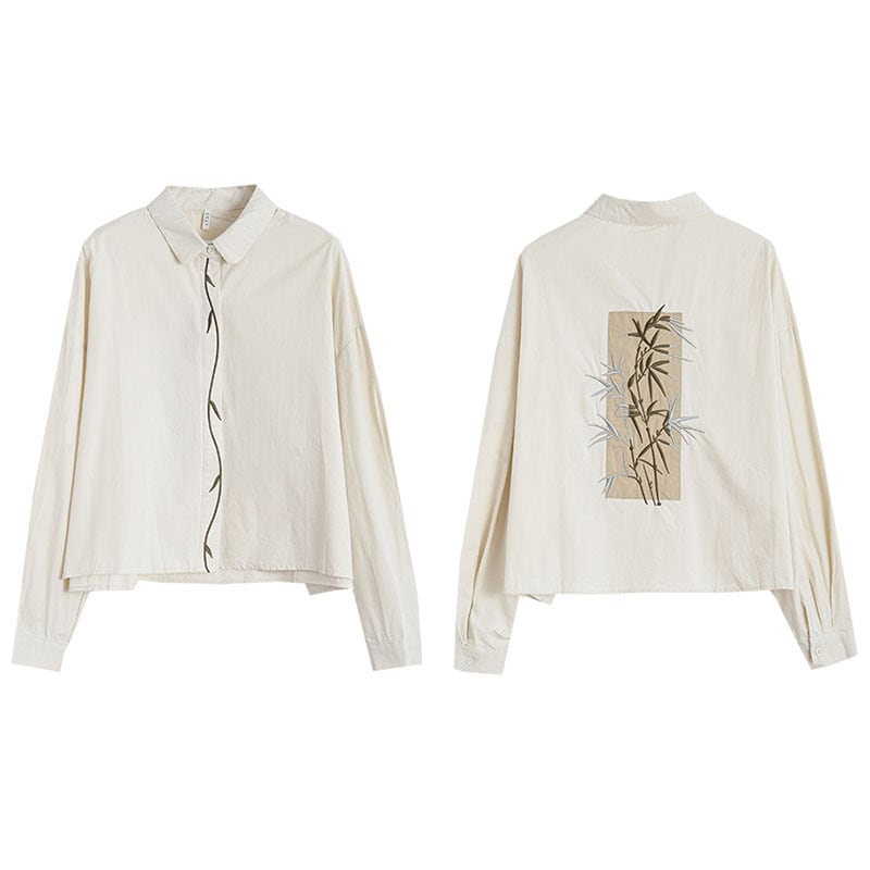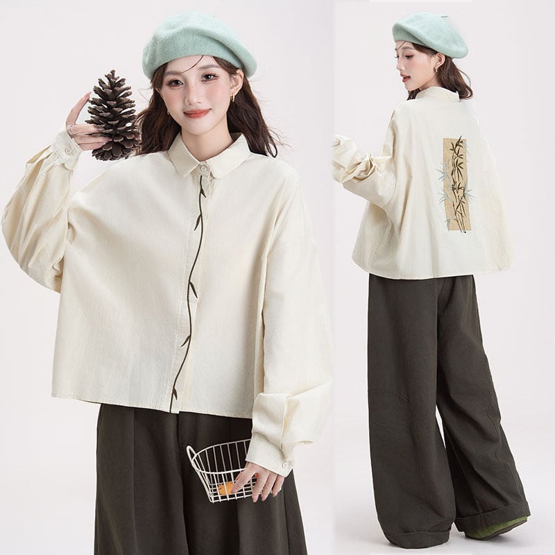 【SWLシリーズ】★チャイナ風トップス★ 2color シャツ 長袖 レディース 刺繍 竹 気質アップ レトロ 文芸スタイル