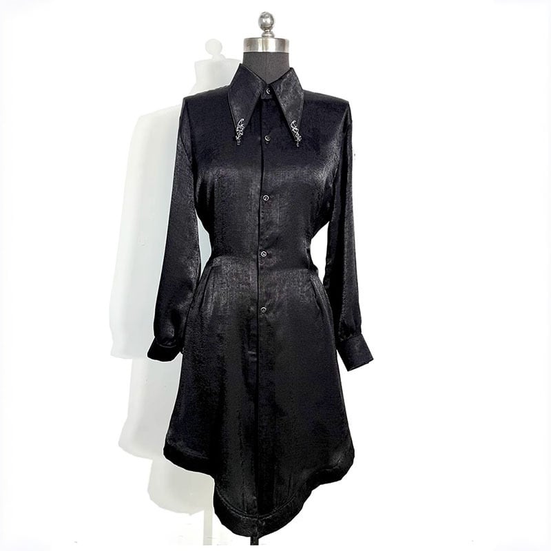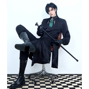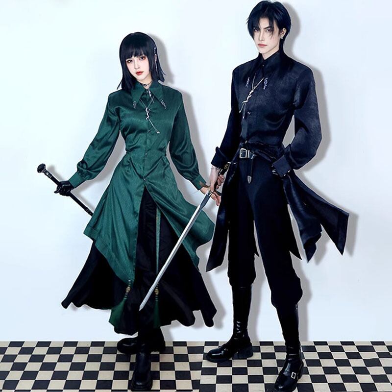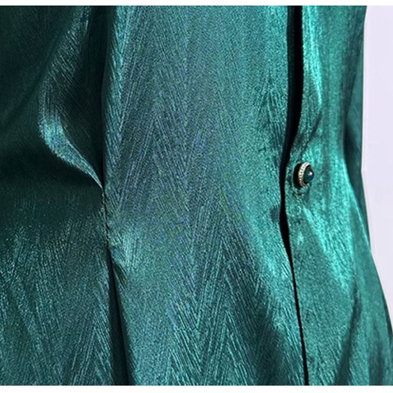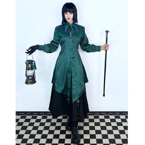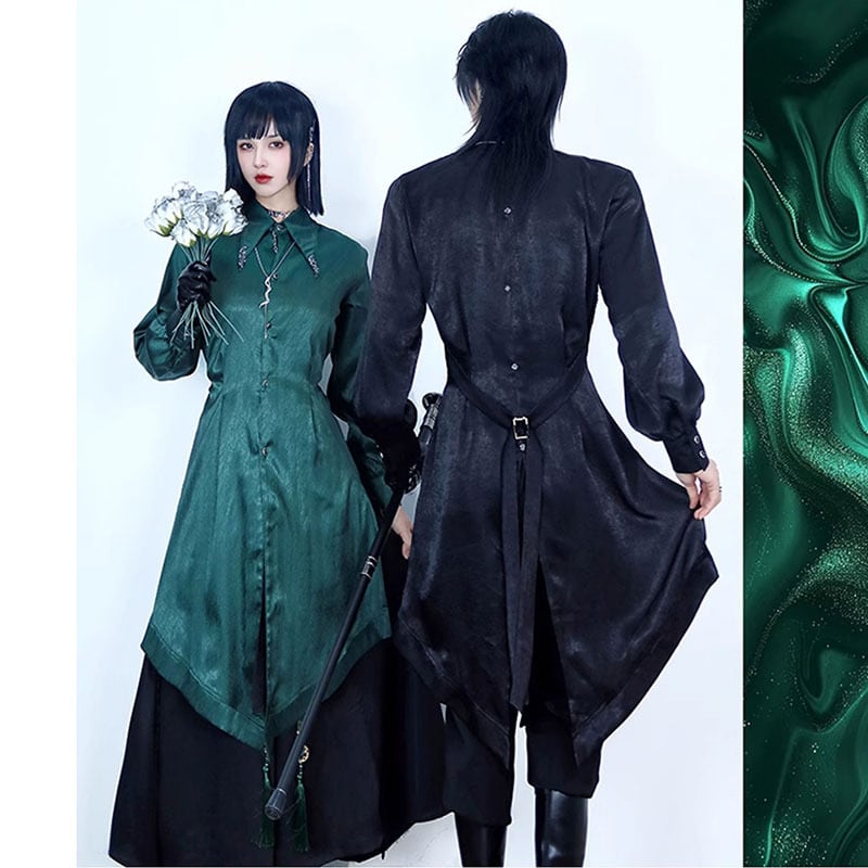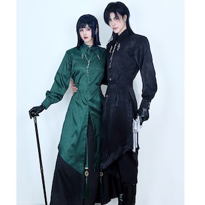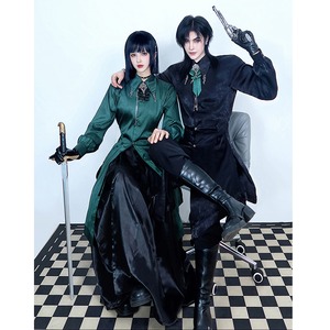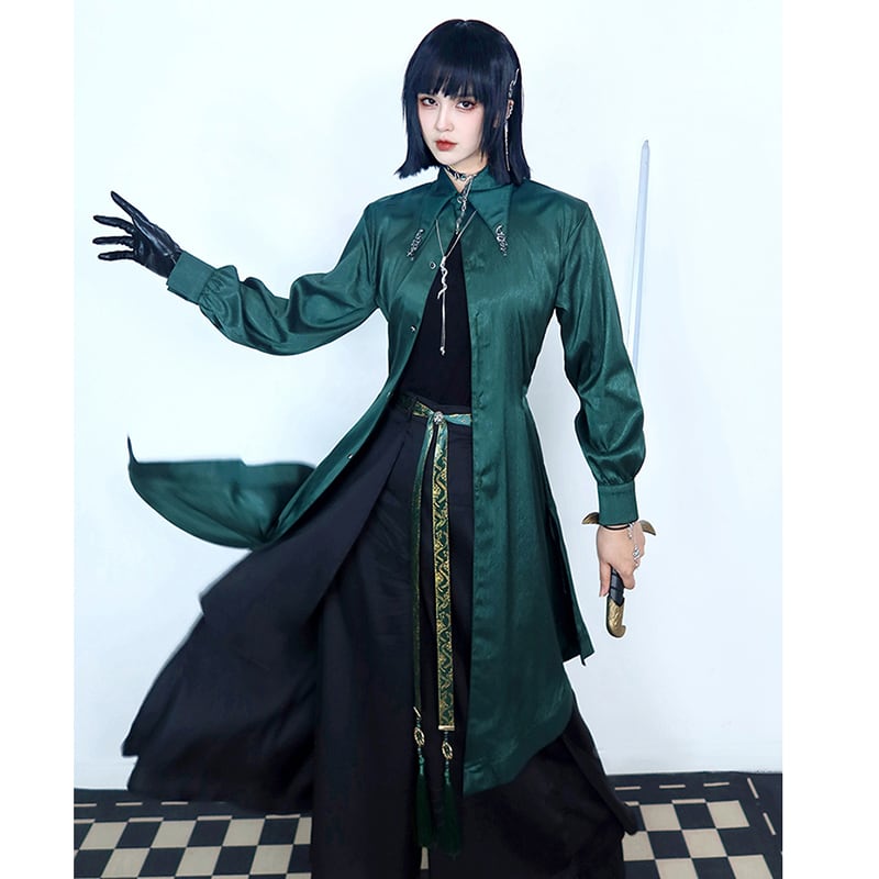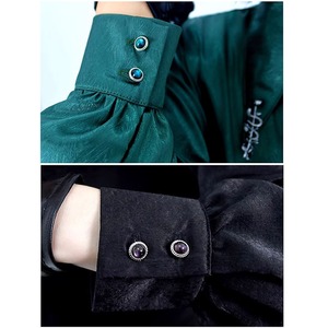 【倉寶兒屋シリーズ】★チャイナ風トップス★ 2color シャツ ロングシャツ 長袖 ブラック グリーン 黒 緑