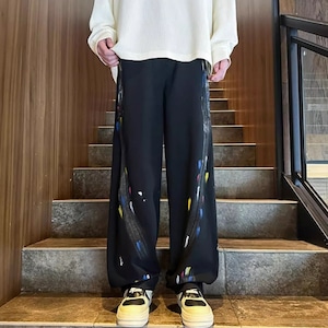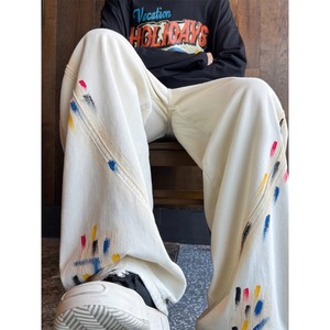 【KADISHOUシリーズ】★デニムパンツ★ ボトムス 男女兼用 ホワイト 黒 メンズ 油絵風 合わせやすい