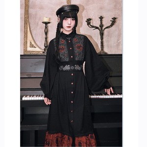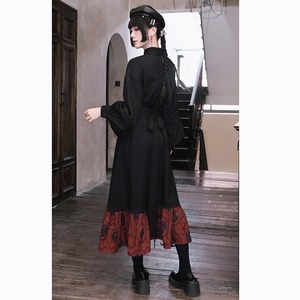 【古怪舍---金烏シリーズ】★チャイナ風ワンピース★ シャツワンピース 長袖 切り替え ブラック 黒い