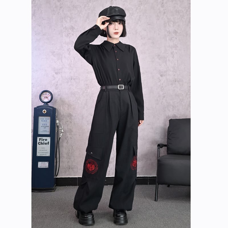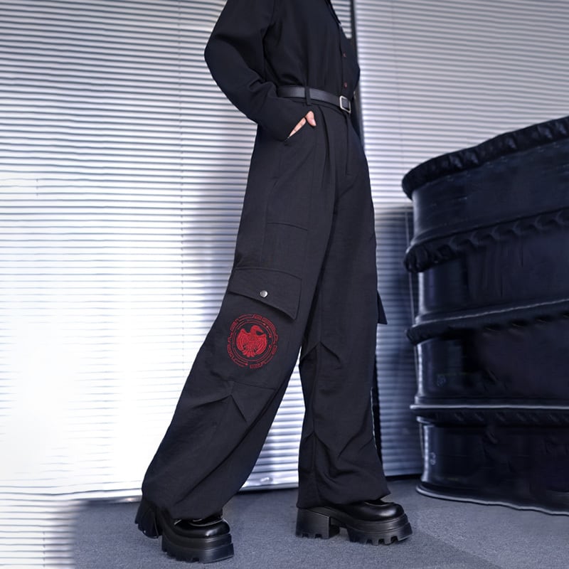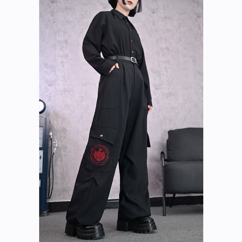【古怪舍---金烏シリーズ】★チャイナ風ズボン★ ボトムス カジュアルパンツ 刺繍 ブラック 黒い