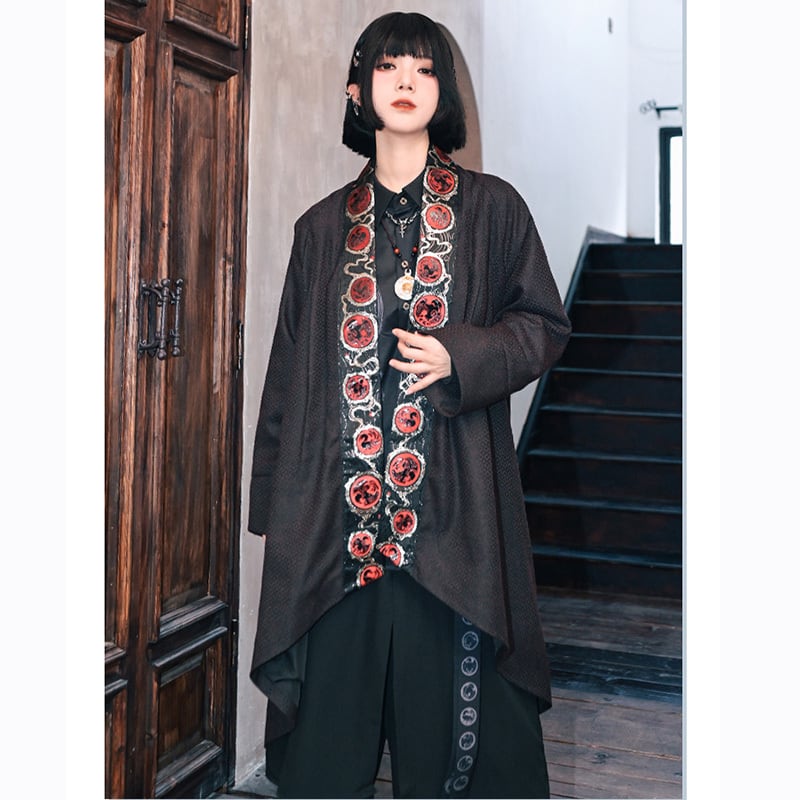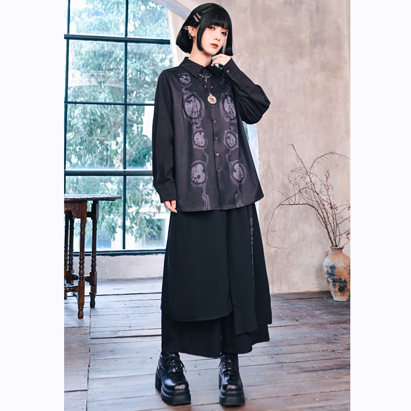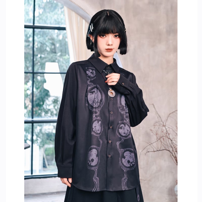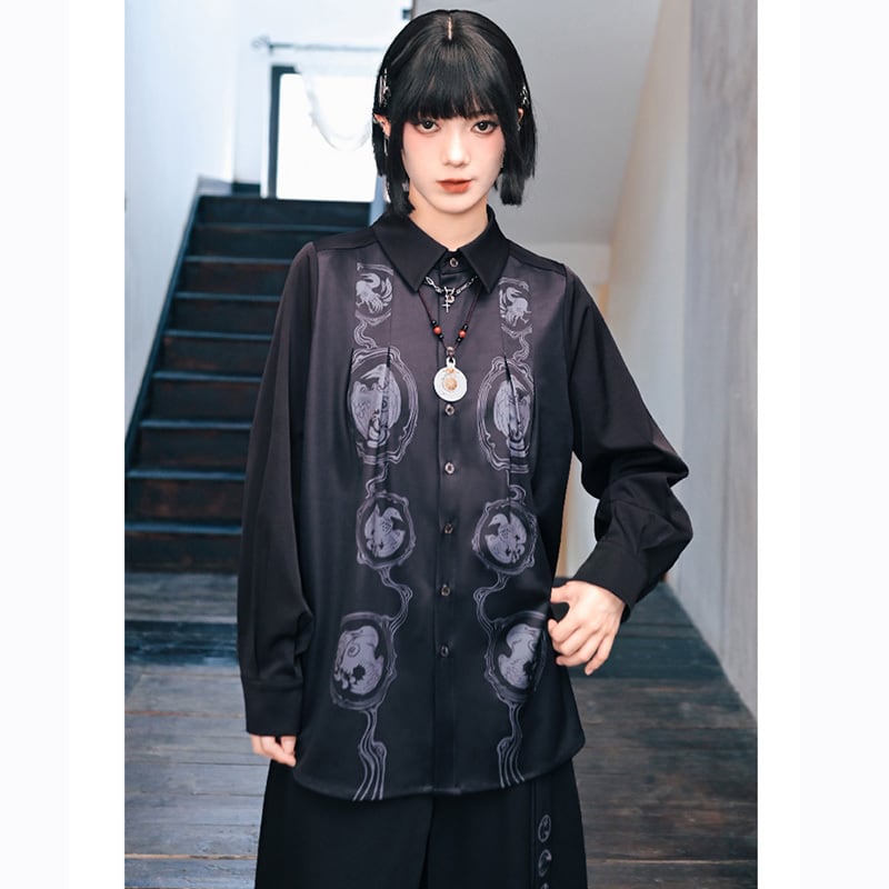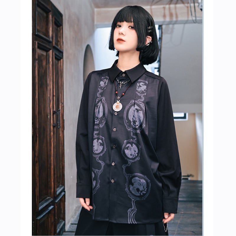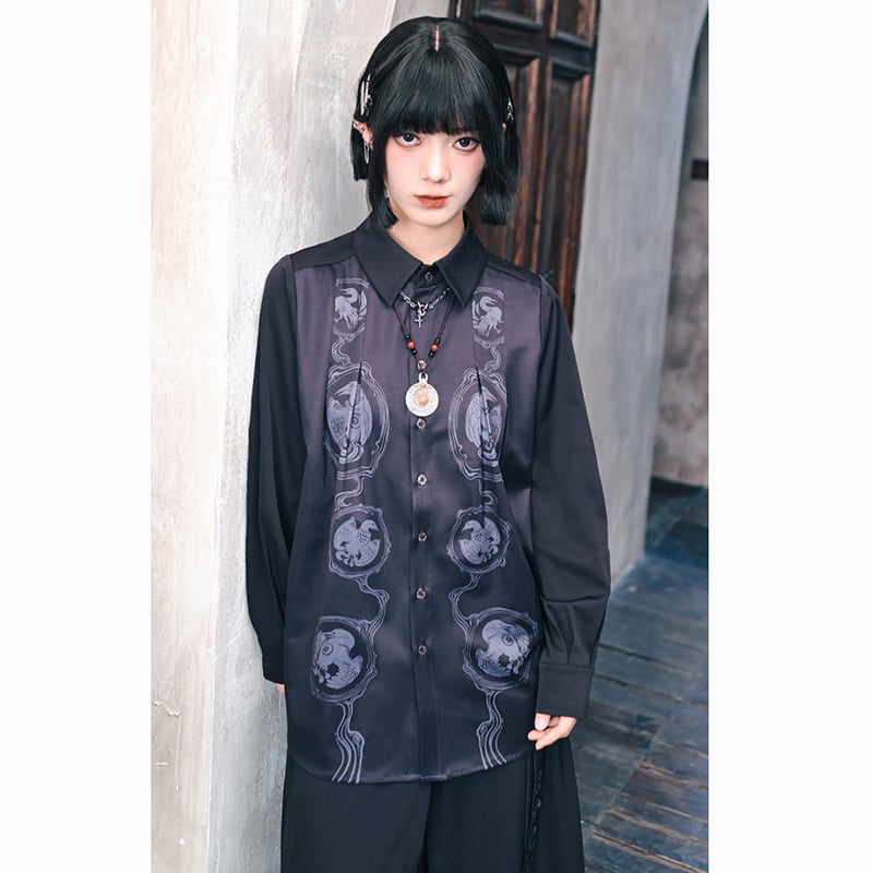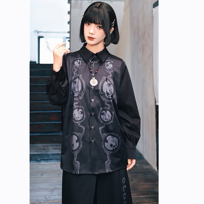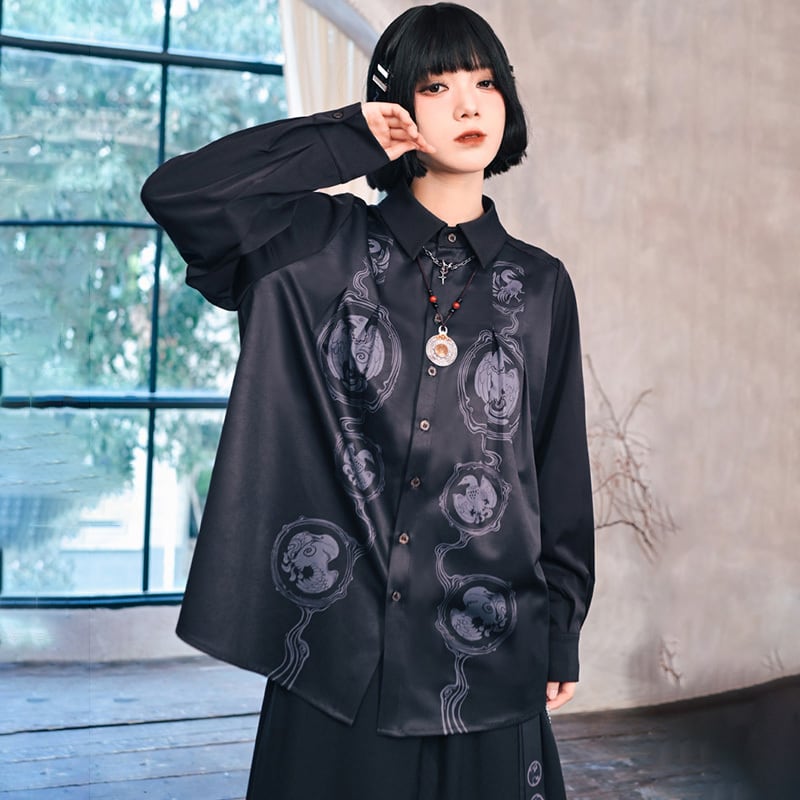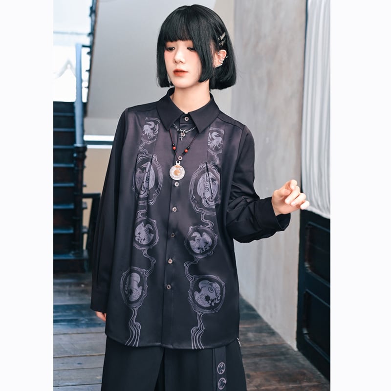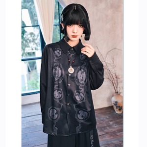 【古怪舍---金烏シリーズ】★チャイナ風トップス★ シャツ 長袖シャツ プリント 個性的 合わせやすい