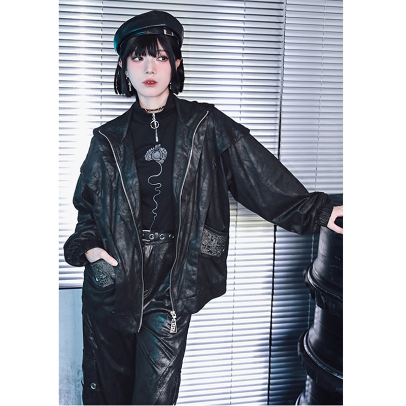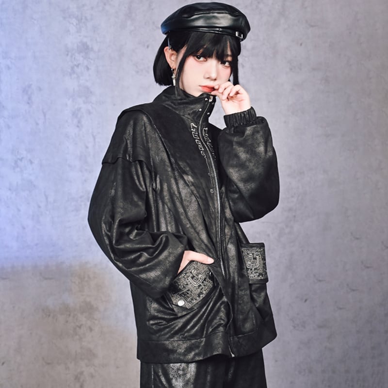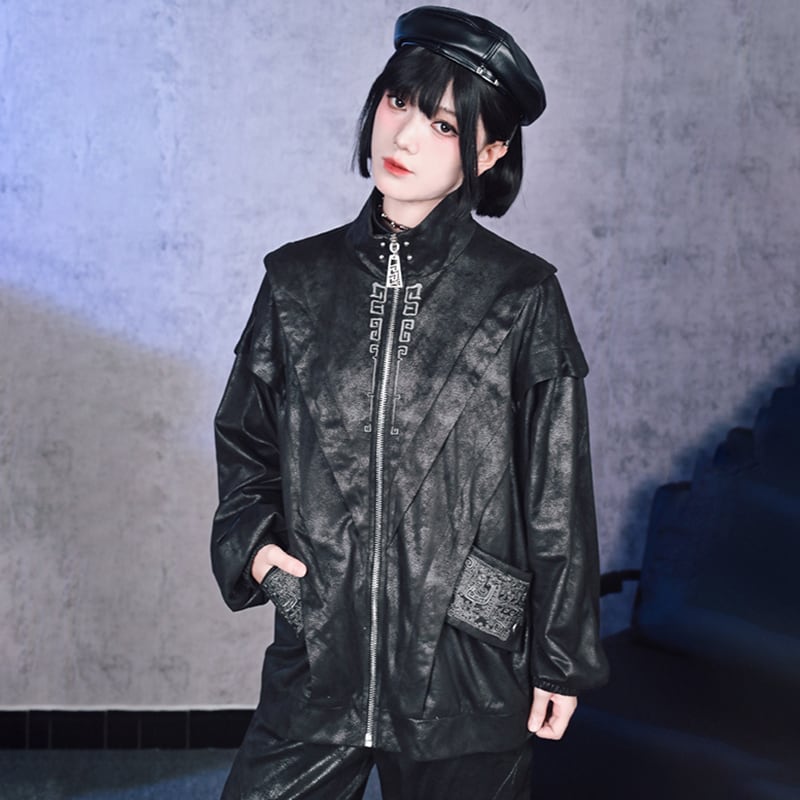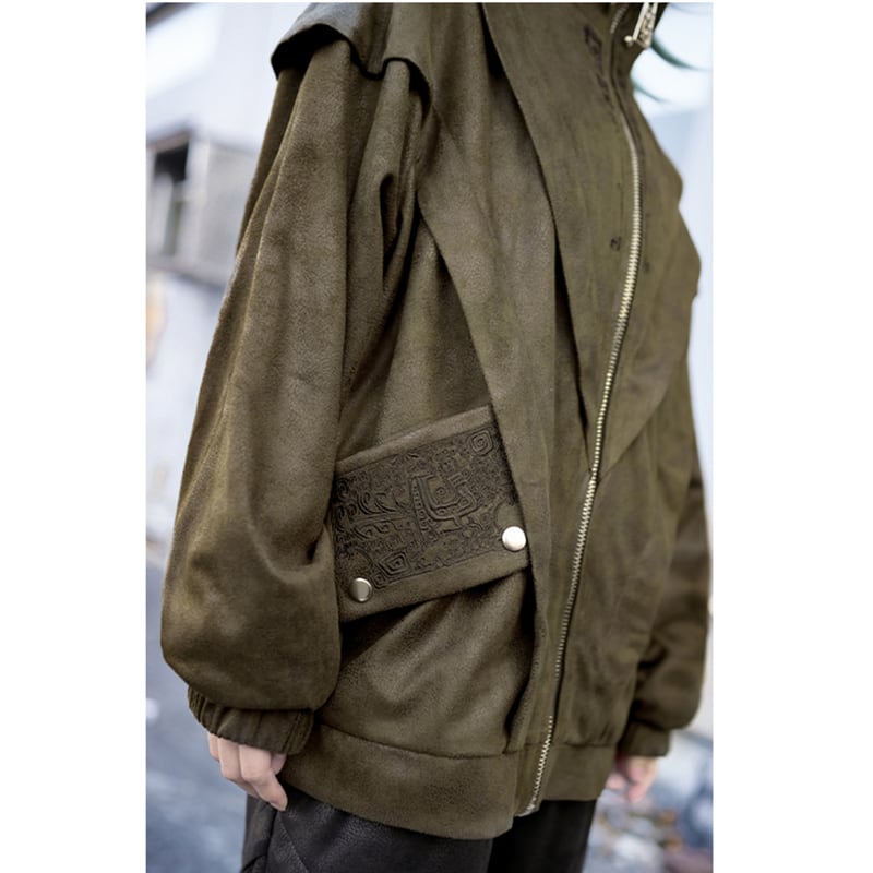 【古怪舍---鑄魂シリーズ】★チャイナ風アウター★ ジャケット 2color 切り替え レトロ 切り替え 緑 黒