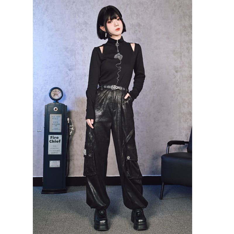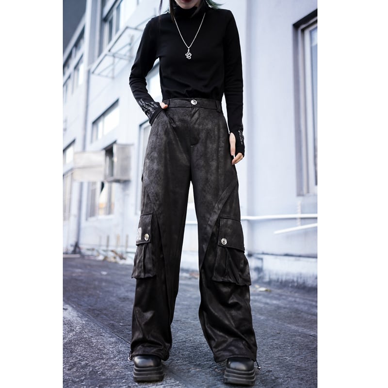 【古怪舍---極夜の境シリーズ】★チャイナ風ズボン★ ボトムス カジュアルパンツ ブラック 黒い