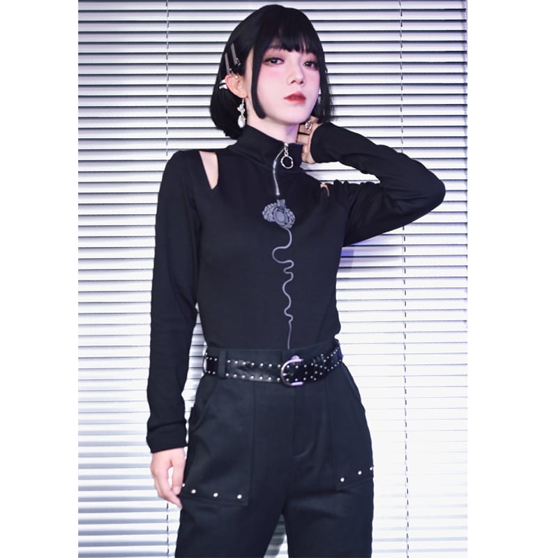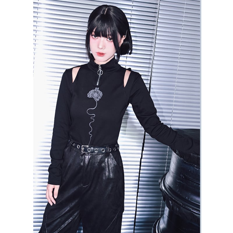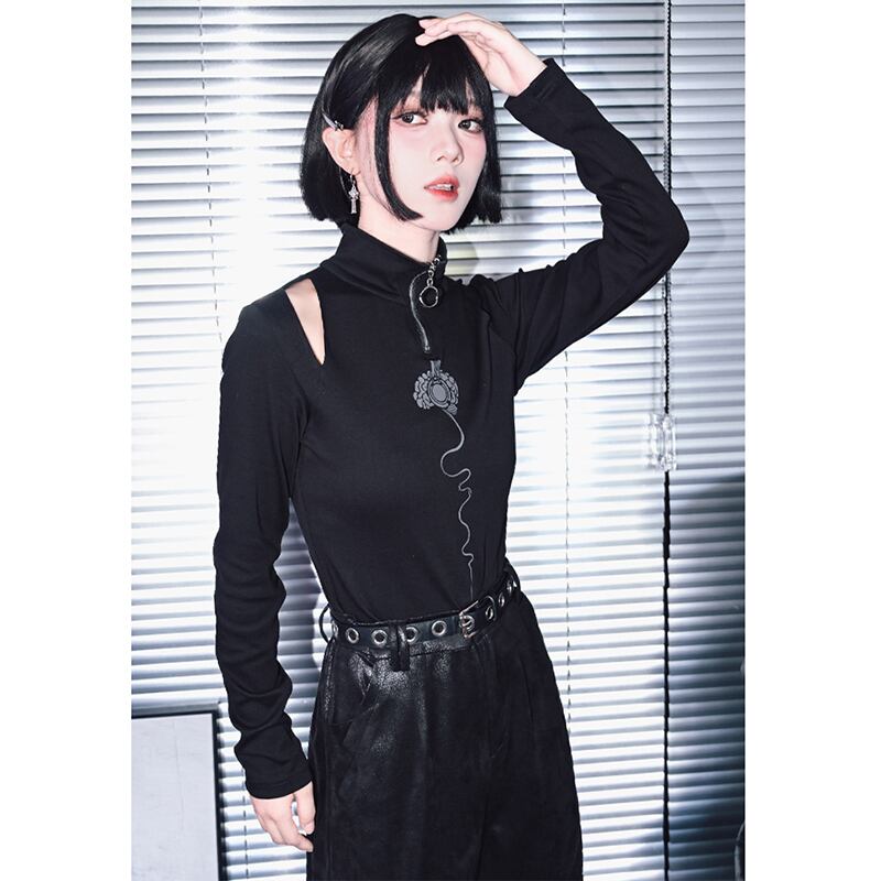 【古怪舍---永生旋律シリーズ】★チャイナ風トップス★ Tシャツ 長袖 オリジナル ブラック 黒い 着痩せ スリム 黒 レトロ