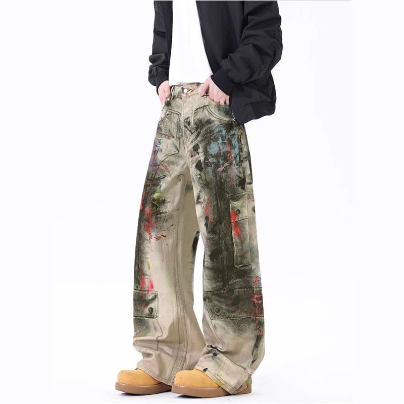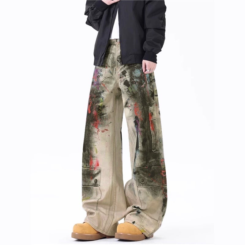【KaNongシリーズ】★デニムパンツ★ ズボン 男女兼用 メンズ 油絵風 レディース 個性的 デザイン性有り レトロ かっこいい