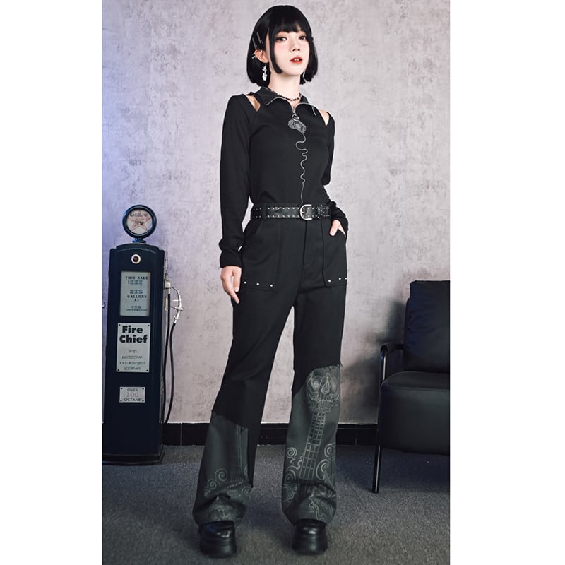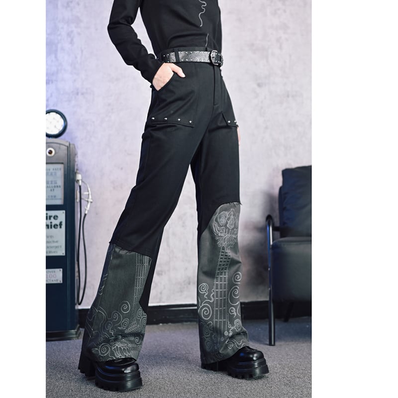 【古怪舍---永生旋律シリーズ】★チャイナ風ズボン★ ボトムス カジュアルパンツ ブラック 黒い 着痩せ