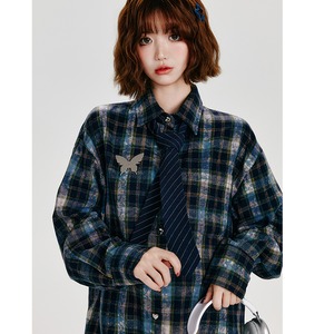 【Girlyhaloシリーズ】★シャツ★ トップス 蝶々 長袖 チェック柄 レディース 可愛い レース 切り替え