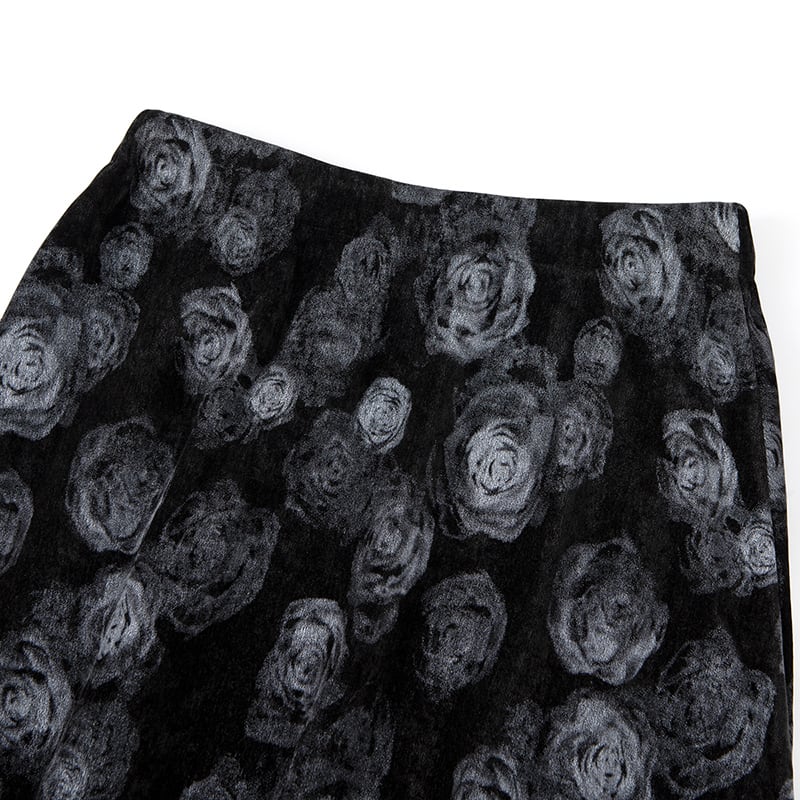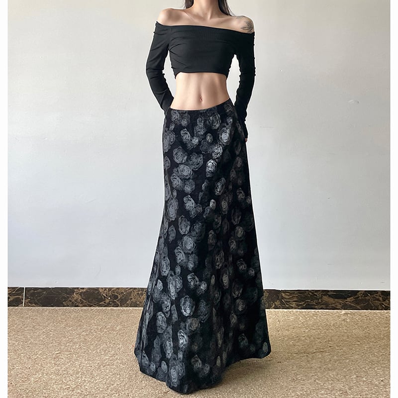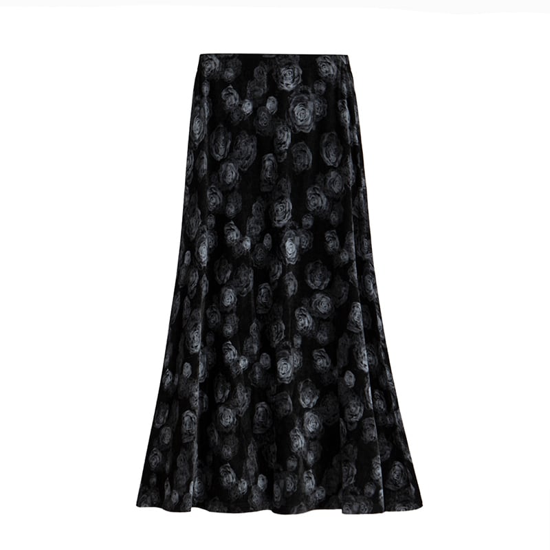 【Gagaoptシリーズ】★スカート★ 薔薇 ボトムス 着痩せ レディース ロング丈 ブラック 黒い ウエストゴム