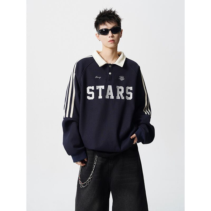 【CEXUシリーズ】★POLOシャツ★ 3color トップス 男女兼用 メンズ 大きいサイズ 青 赤 灰 縦縞 縞模様