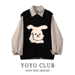 【YOYO CLUBシリーズ】★セットアップ★ シャツ+ベスト レディース 縦縞 縞模様 兎 ウサギ 可愛い