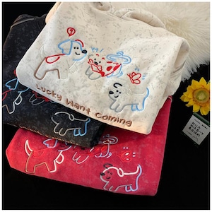 【Wrzbシリーズ】★パーカー★ 3color トップス 男女兼用 メンズ 犬 カートゥーン 絞り染め カジュアル