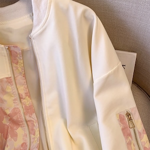 【YINGMISHIシリーズ】★ジャケット★ アウター レディース 切り替え 花柄 スタジャン 可愛い