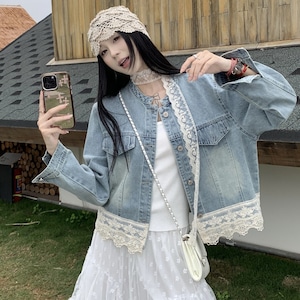 【XJXJシリーズ】★ジャケット★ アウター レディース 切り替え デニム 気質アップ レース 可愛い 合わせやすい