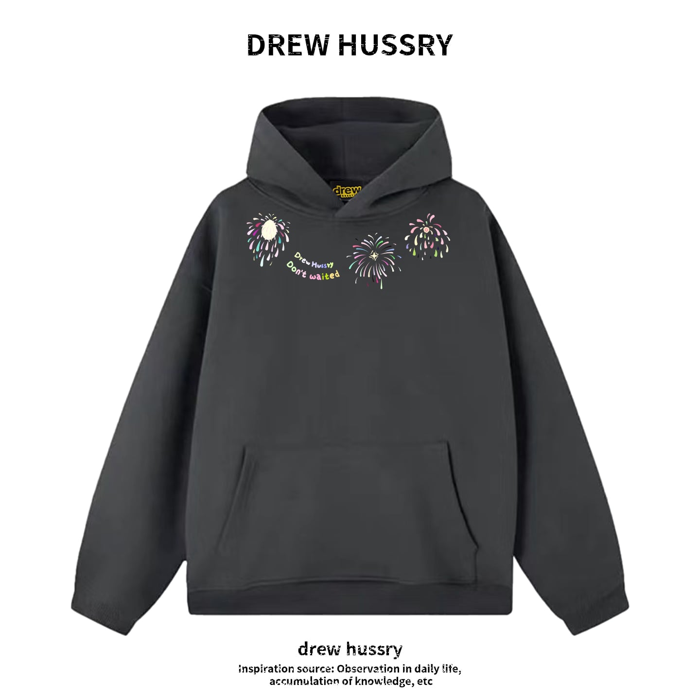 【DREWシリーズ】★パーカー★ 4color トップス 男女兼用 メンズ レディース 花火 プリント 黒 青 灰 赤