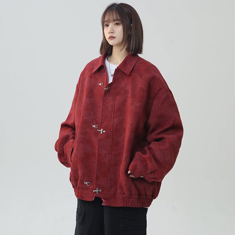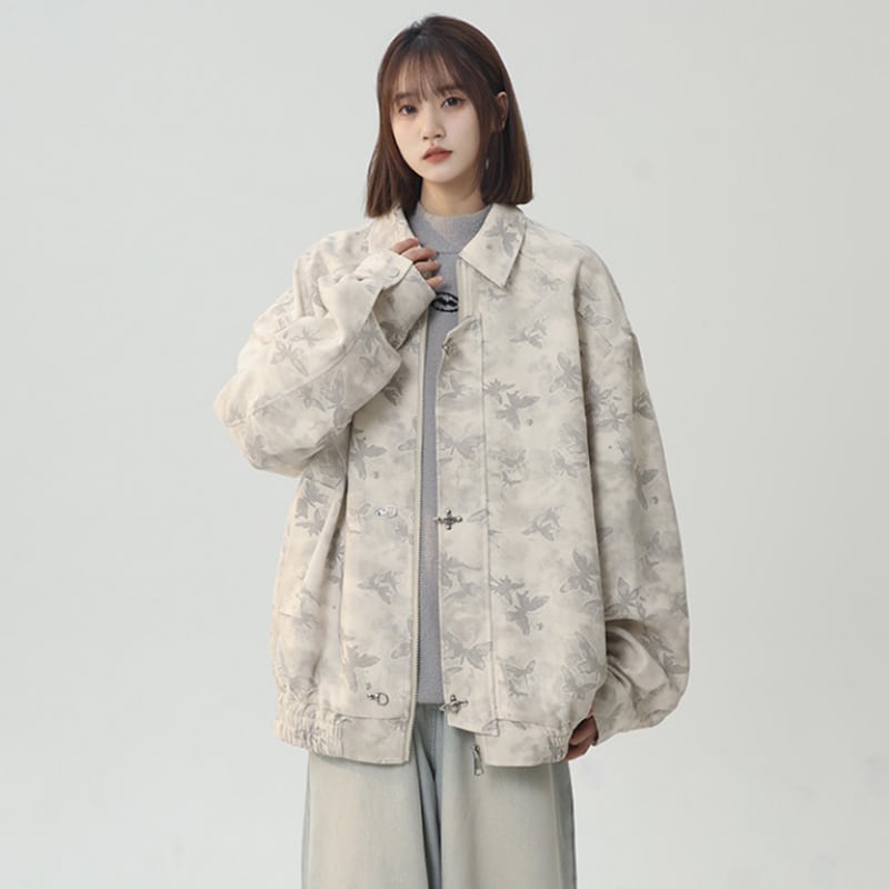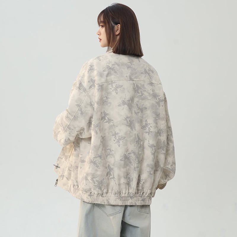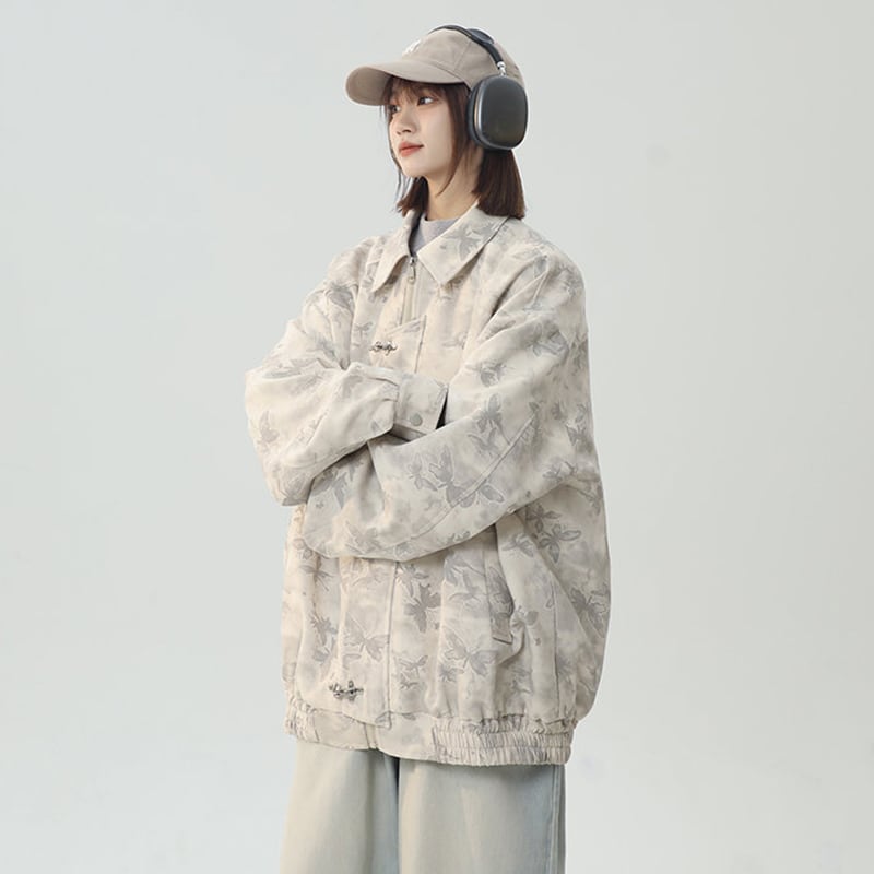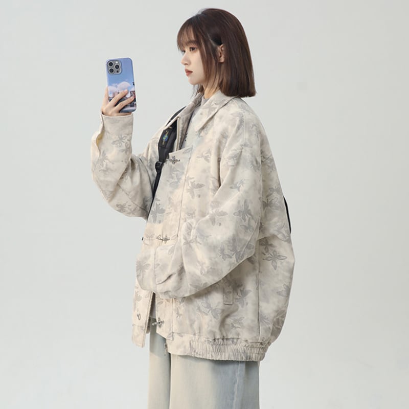【藤伊曼シリーズ】★ジャケット★ 3color アウター 男女兼用 メンズ 絞り染め 蝶々 金属ボタン レトロ