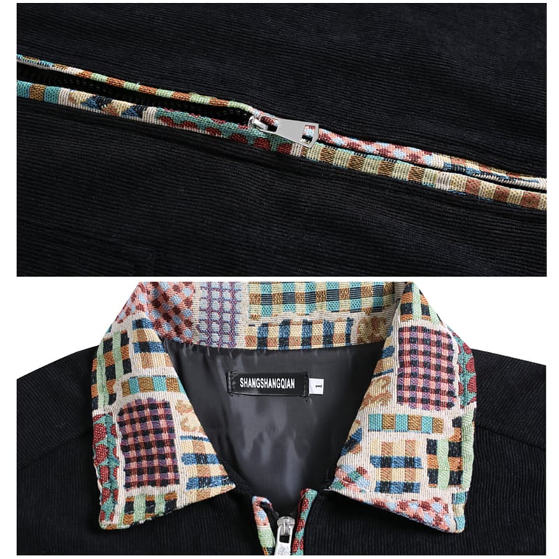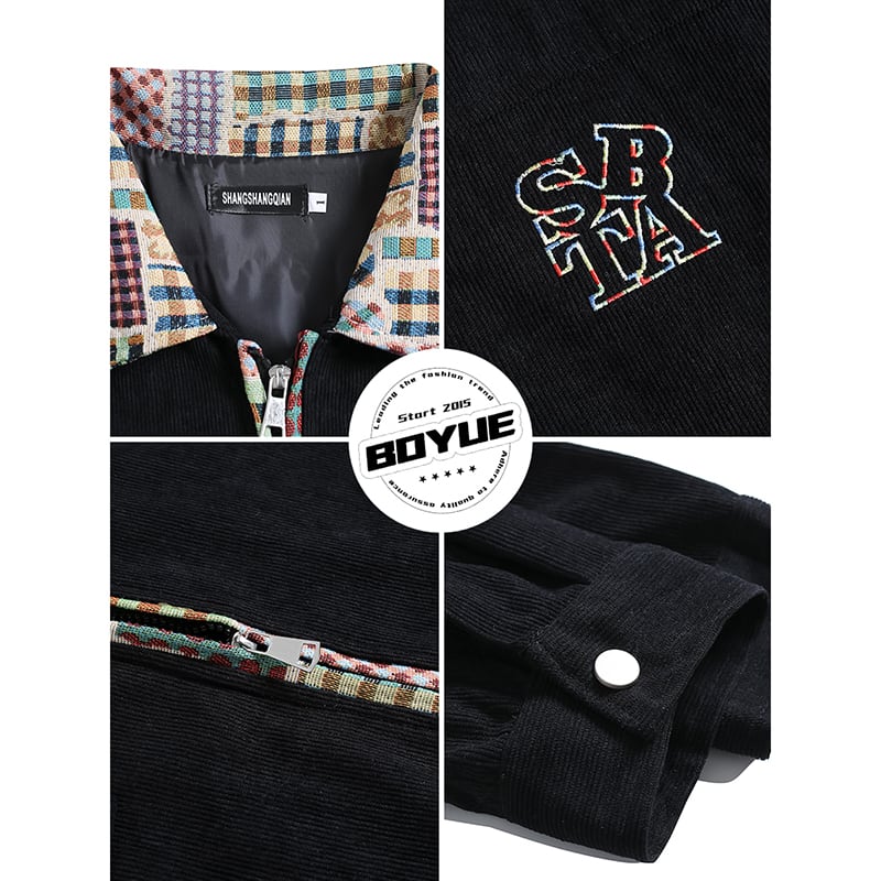 【BOYUEシリーズ】★チャイナ風アウター★ ジャケット エスニック風 切り替え 男女兼用 メンズ ブラック 黒い