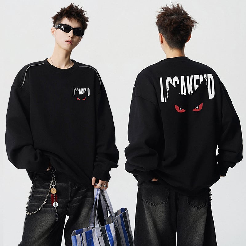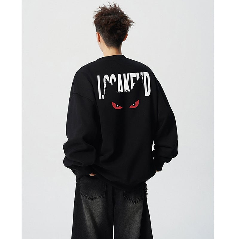 【V37シリーズ】★トップス★ 4color スウェット 男女兼用 メンズ 大きいサイズ 黒 灰 悪魔 アルファベット カジュアル